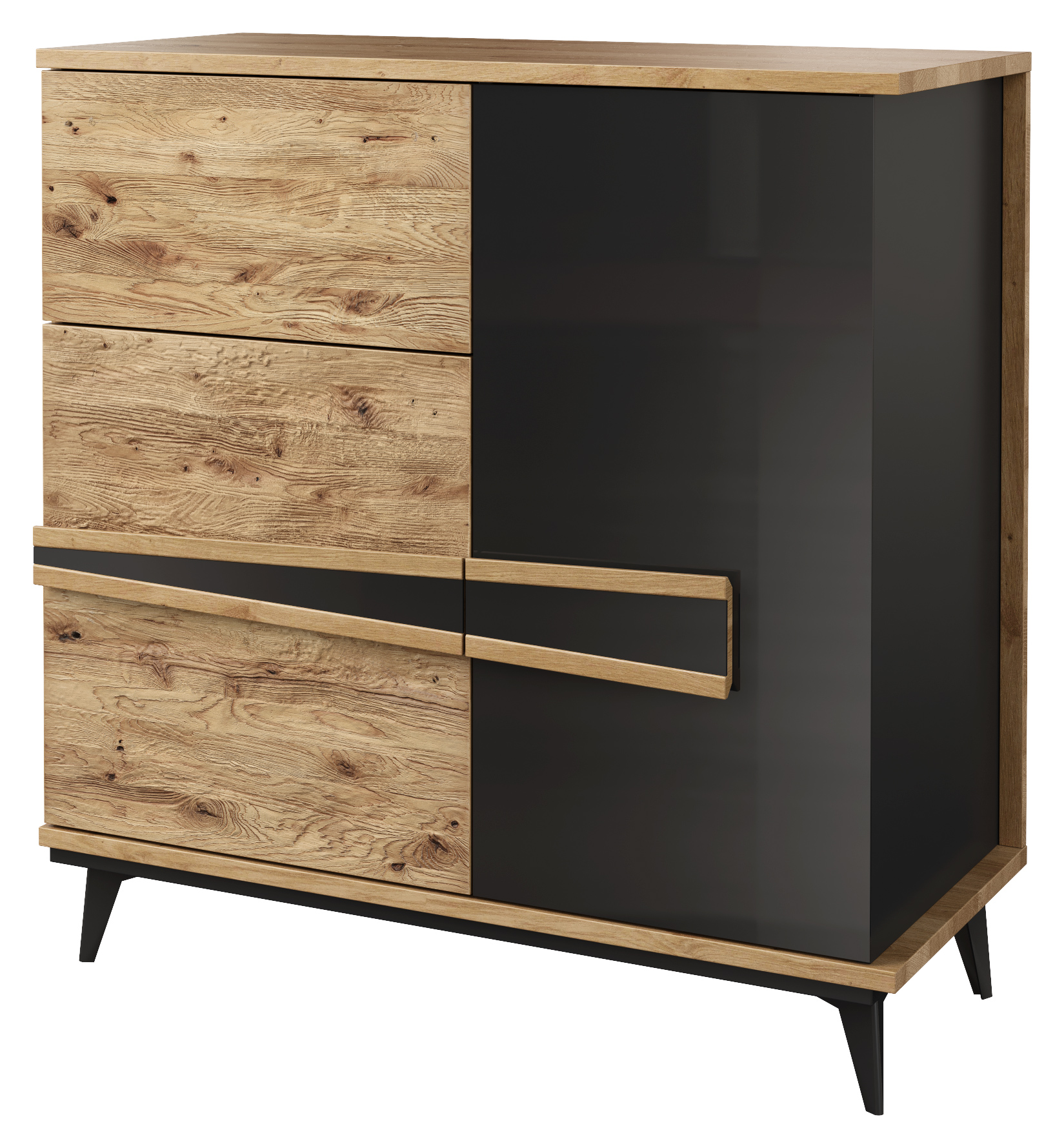 - Komoda Etna 2D1SZ (pravé provedení)**: šířka 108 cm, hloubka 50 cm, výška 111 cm