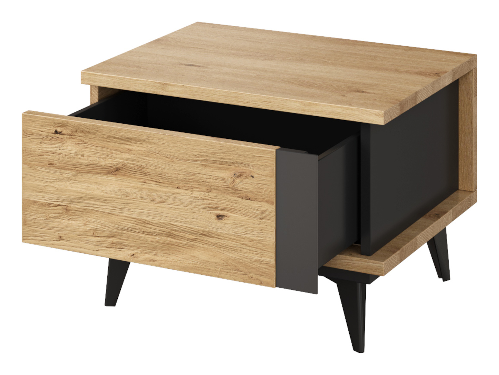 Ložnice Etna vás zaujme svým industriálním designem. Jedinečným prvkem jsou zvláštní rukojeti na dvířkách, které dodají nábytku nádech elegance. Produkty jsou vyrobeny z masivního dubového dřeva a přírodní dubové dýhy s černými skleněnými prvky a dvířky. Kvalitní technologie lakování a moření navodí přírodní vzhled dřeva a zvýrazní tak jeho léta. Nábytek stojí na černých kovových nožkách, které provzdušní váš celkový prostor. Dvířka i zásuvky v celém systému mají jednoduchý systém tichého dovírání.