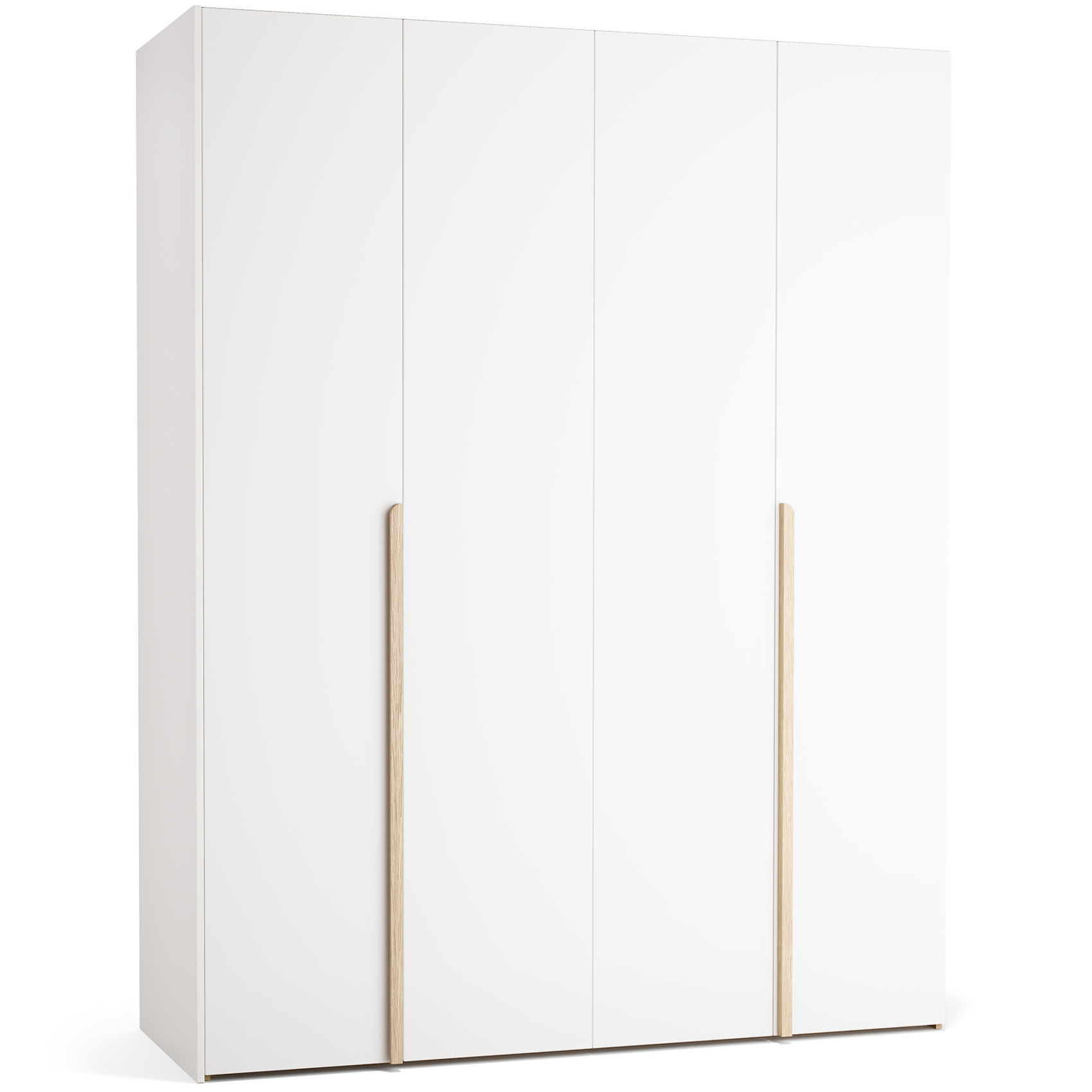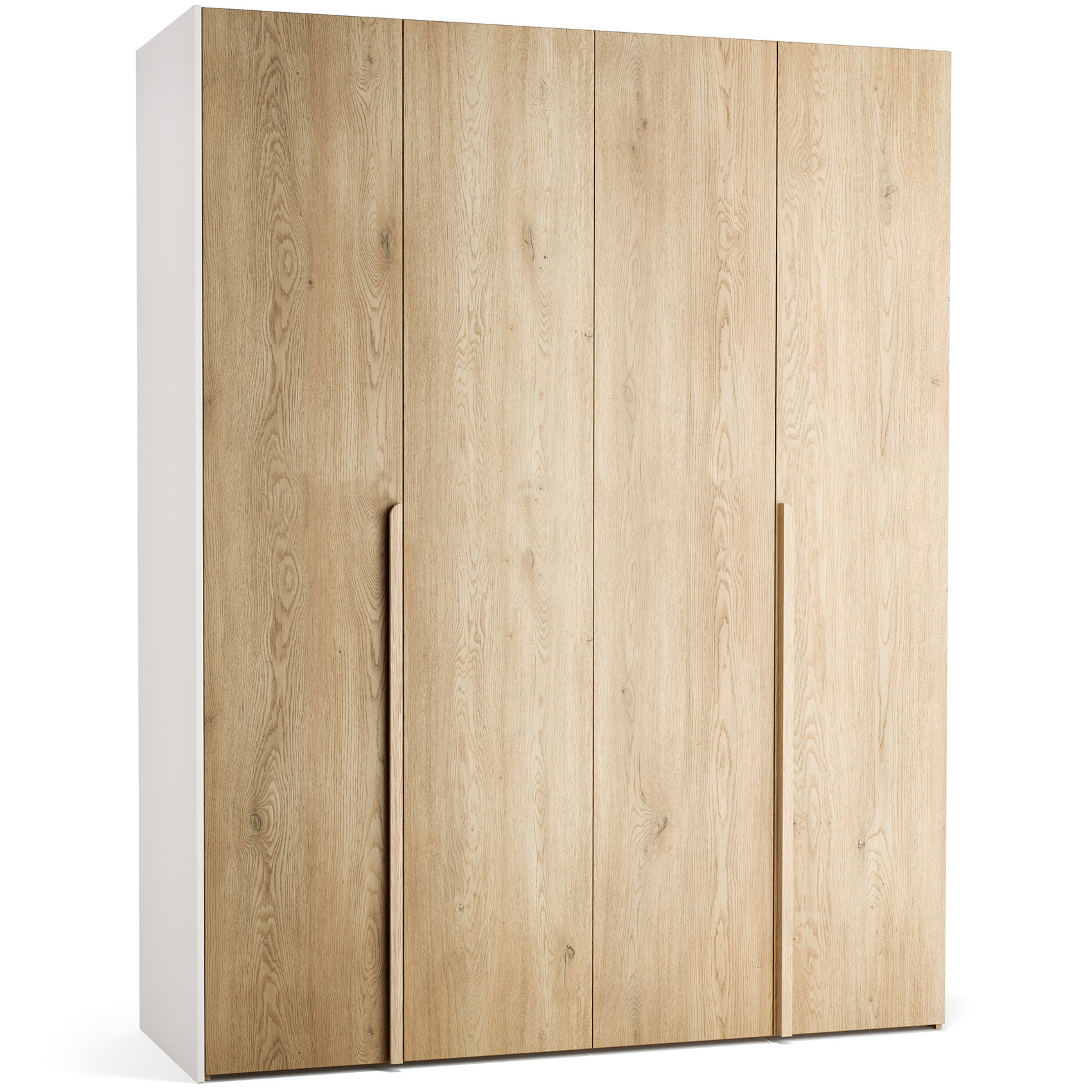 Šatní skříň Stor vás zaujme svým moderním designem s luxusními prvky. Můžete ji využít jako samostatně stojící skříň nebo díky maskovacím panelům snadno nahradí nábytek na míru. Je vyrobena z vysoce kvalitní nábytkové desky, odolná vůči poškození. Úchyty jsou z masivního dubového dřeva nebo z kovu, záleží, jaký ze 6 typů rukojetí si vyberete. Součástí skříně je LED osvětlením s pohybovým senzorem, které se rozsvítí při otevření skříně. Dveře jsou posuvné a skládací do akordeonu. Zároveň mají zabudovaný systém tichého dovírání. Vnitřní část skříně je vždy v odstínu dubu, na vás záleží jakou barvu předních a bočních částí si vyberete.