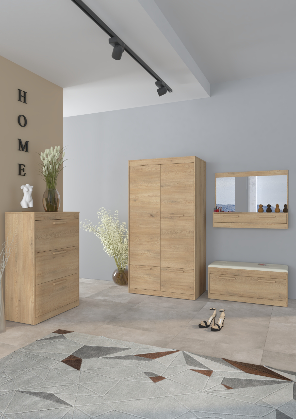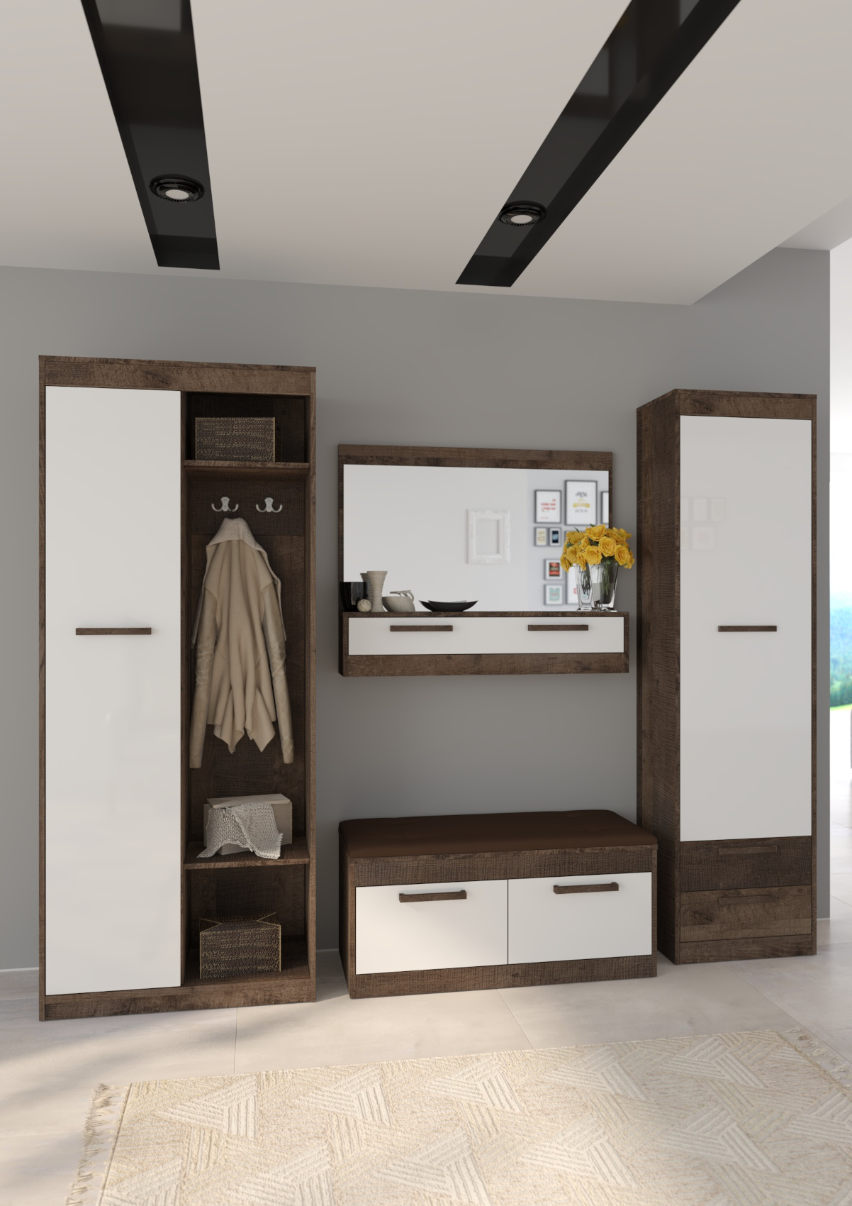 Součástí botníku jsou 2 dvířka k uložení bot. Ve vnitřním prostoru je uložena 1 lakovaná police.