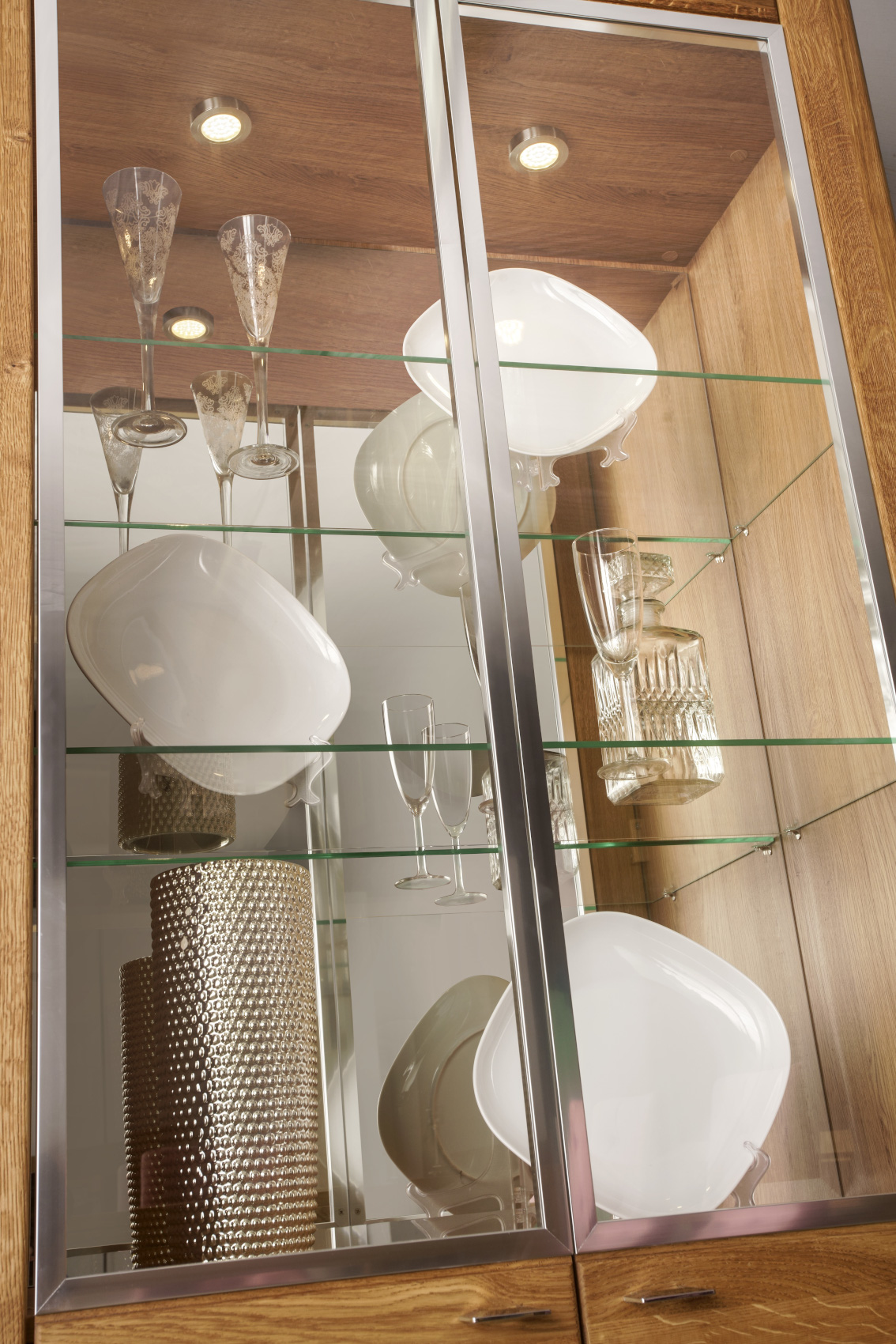Za příplatek si můžete zvolit variantu s LED osvětlením skleněných polic, které dodá nábytku nádech luxusu a navodí příjemnou intimní atmosféru.