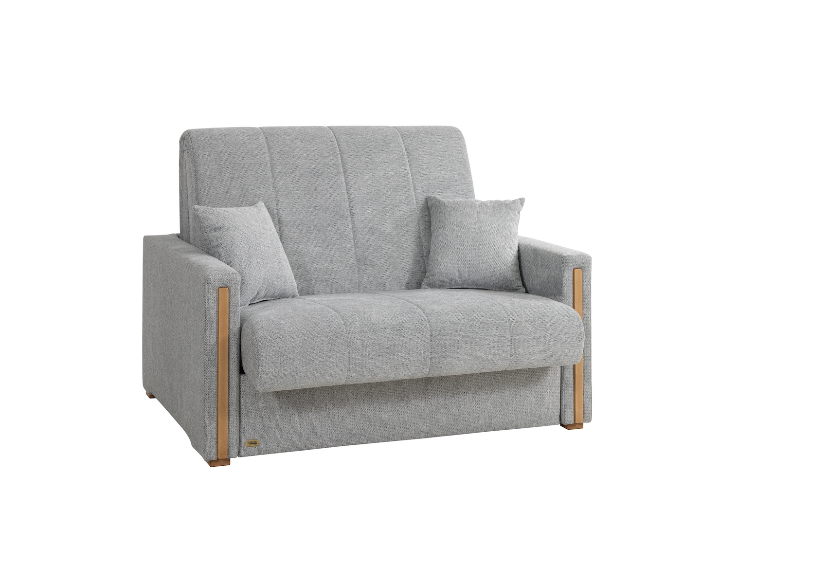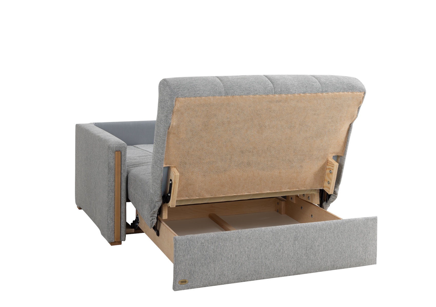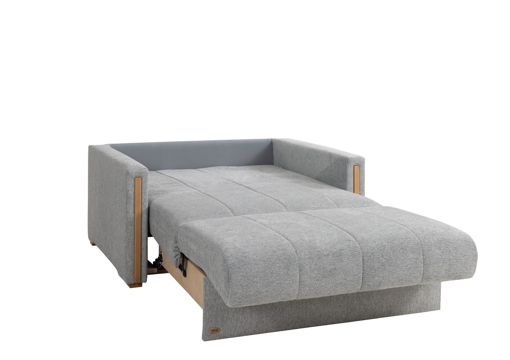 Dvoumístná rozkládací pohovka TULI-I, s rozkladem a úložným prostorem, z bukového dřeva