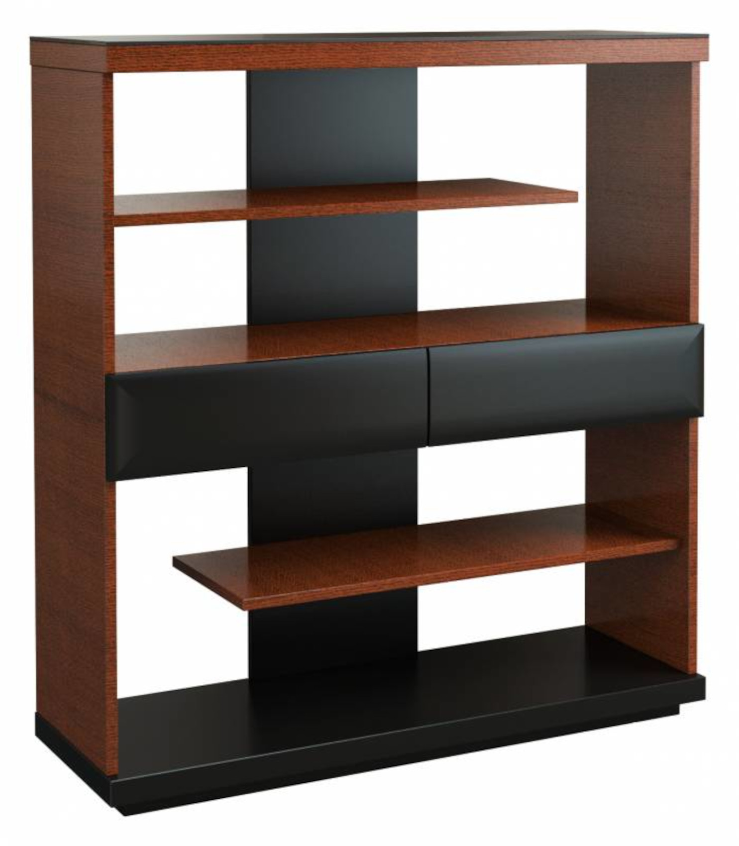 Součástí regálu jsou 2 lakované police k vystavení oblíbených knih, dekorací nebo rámečků s fotografiemi. Uprostřed jsou 2 prostorné zásuvky k uložení vašich nezbytností.
