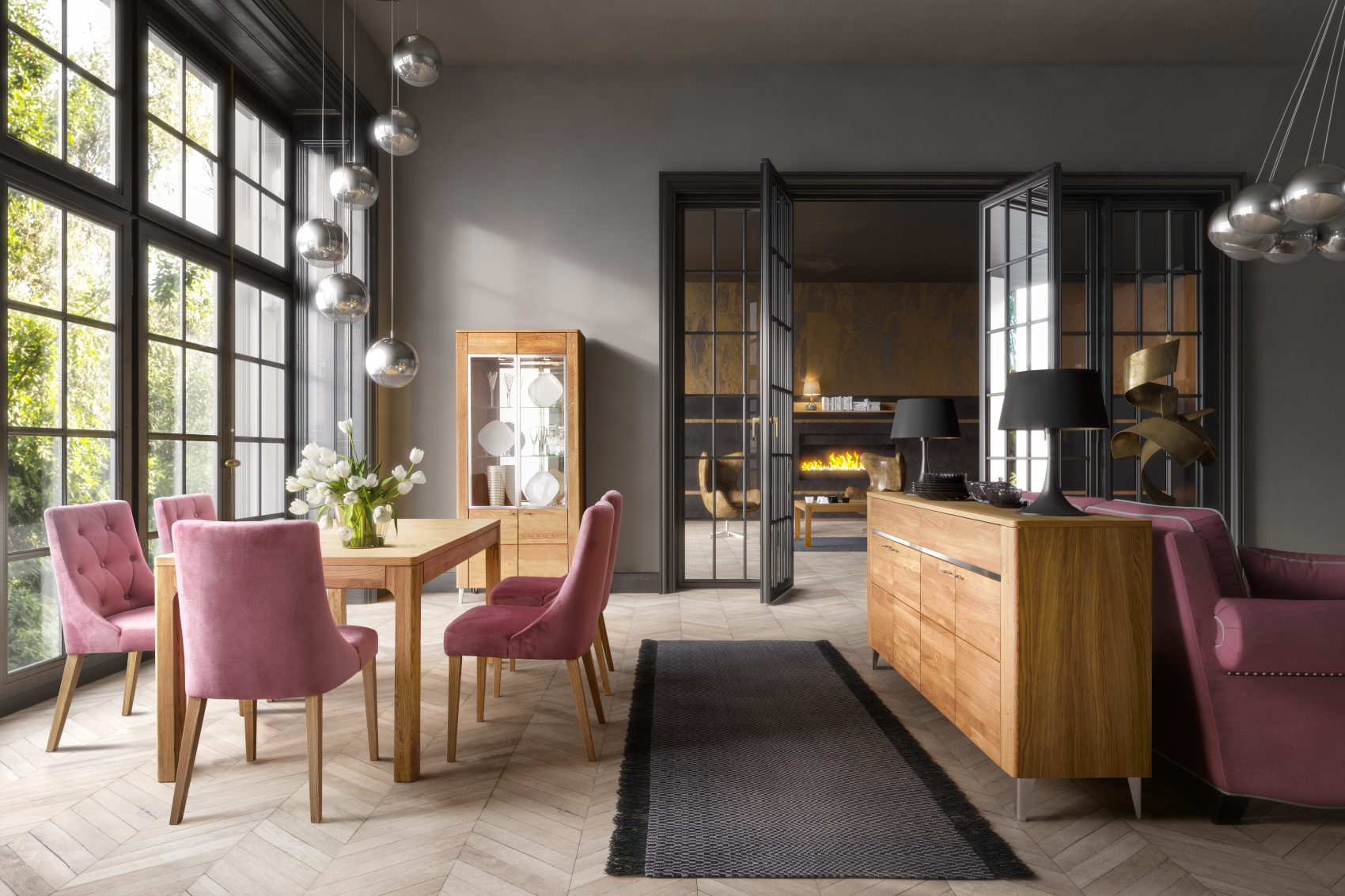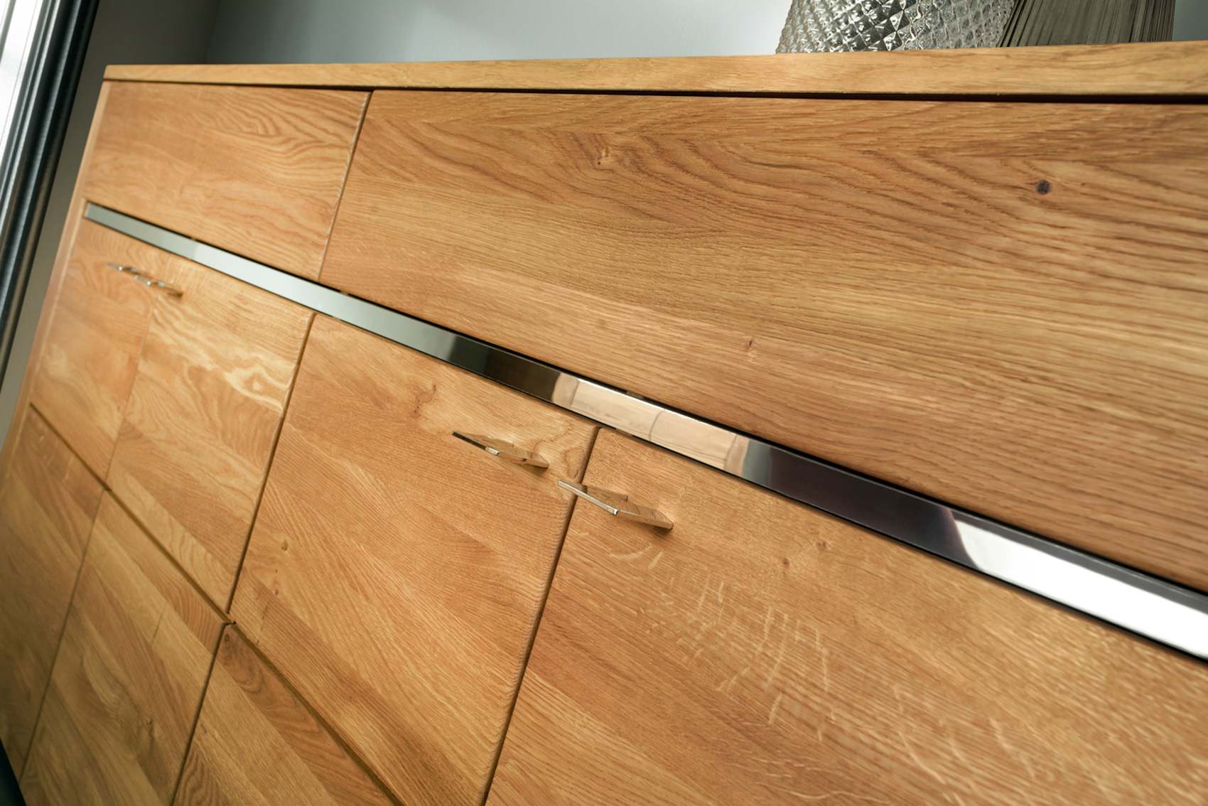 Moderní komoda Latina 46 vás zaujme svým přírodním designem se strukturou dřevěných lét s chromovými detaily. Přední část je vyrobena z masivního dubového dřeva a korpus z přírodní dubové dýhy. Komoda stojí na chromových nožkách, které provzdušní celý váš interiér a úchyty jsou vyrobeny také z chromu.