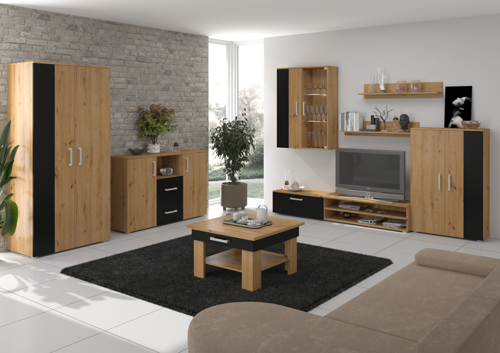 Komoda Stella 01 se skvěle hodí do moderně zařízených interiérů. Zaujme vás svým moderním designem s přírodními prvky. Je vyrobena z kvalitních lamino desek o síle 16 mm. Příjemný design nábytku doplňují stříbrné úchytky z odolného tvrzeného plastu. Nabízíme vám několik barevných variant. Zajímavá kombinace barev dodává komodě ještě více na luxusu a nadčasovosti. Jednotlivé díly jsou variabilní, lze je navzájem kombinovat a vytvořit si tak svůj vysněný obývací pokoj.