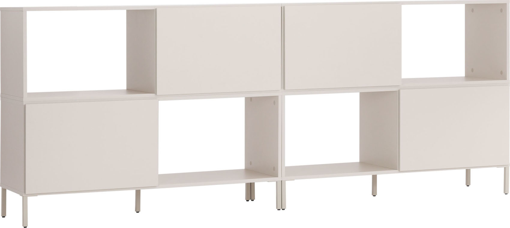 Součástí jsou 4 dvířka, která můžete nainstalovat na levou či pravou stranu. Vedle dvířek je otevřený prostor, kam můžete vložit malé či velké barevné skříňky v odstínu pudrově růžové, díky kterým vzniká mnohem více prostoru k vystavení vašich oblíbených knih, dekorací a rámečků s fotografiemi.