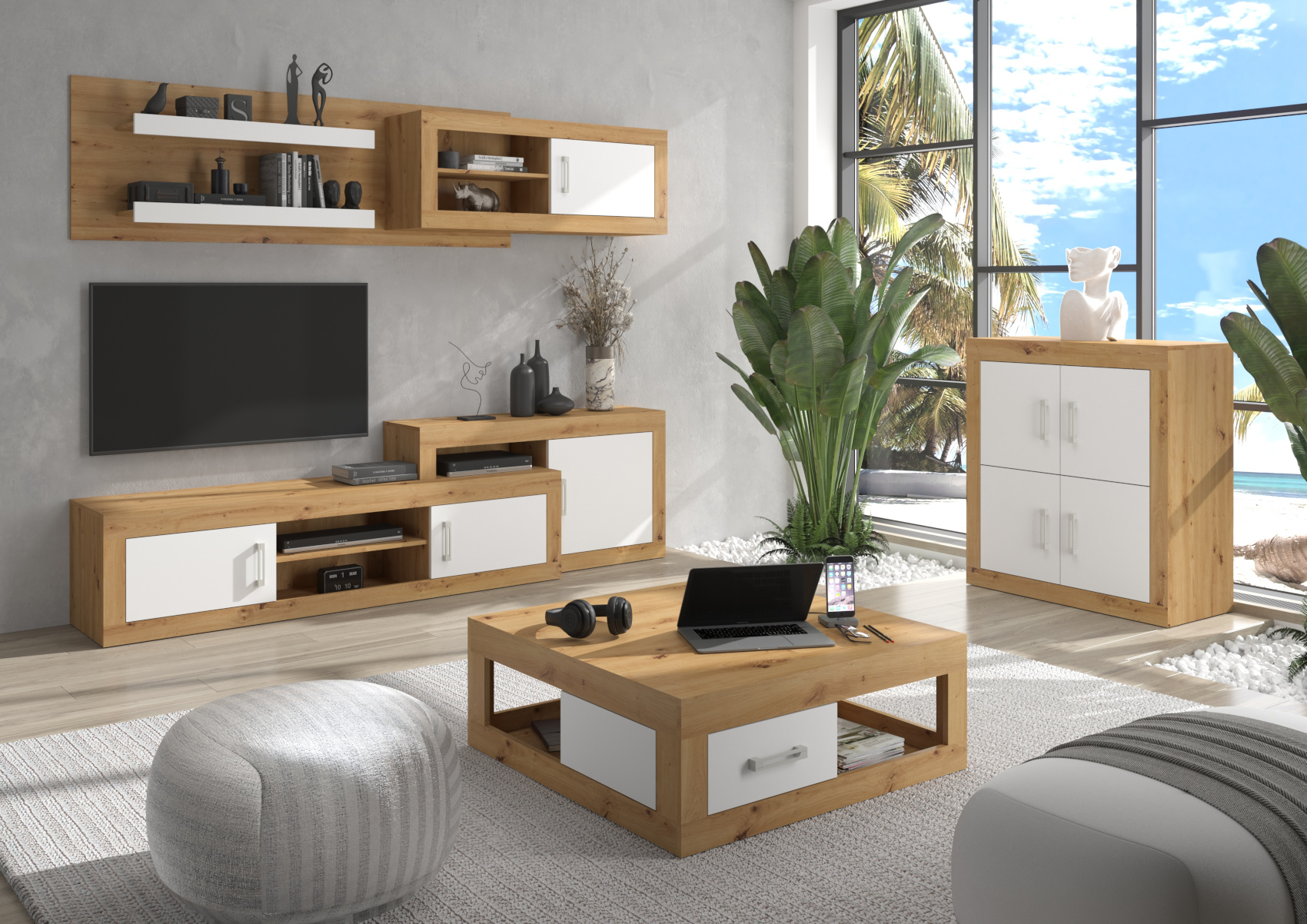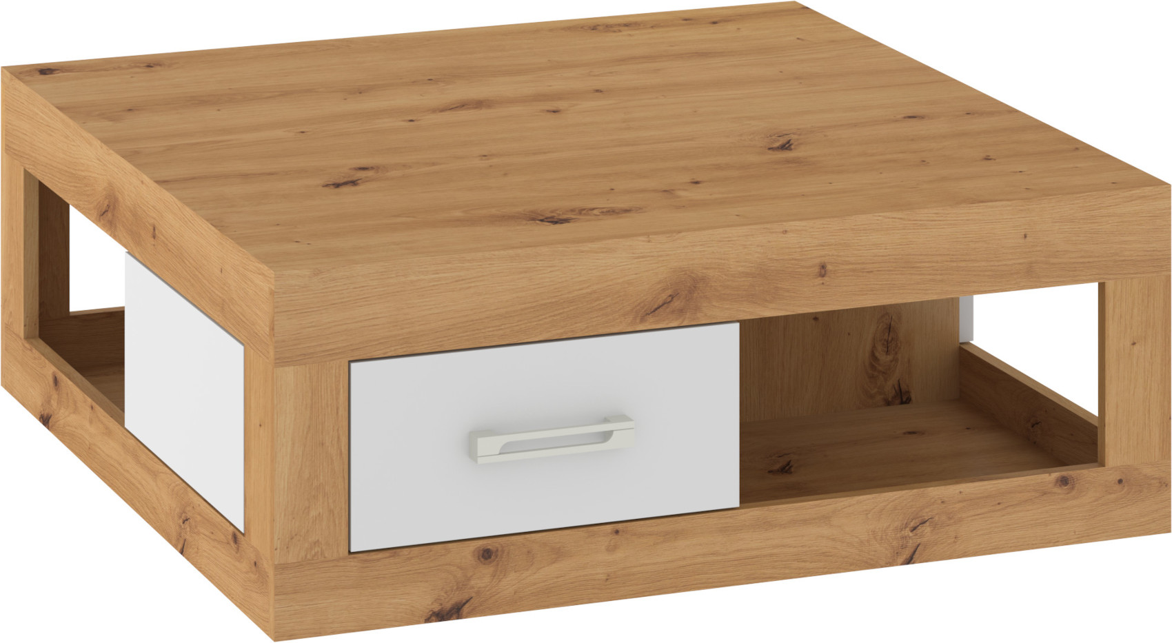 Konferenční stolek Verin 02 se skvěle hodí do moderně zařízených interiérů. Zaujme vás svým neobvyklým avšak moderním designem a přírodním provedením. Je vyroben z kvalitních lamino desek o síle 16 mm. Nabízíme vám několik barevných variant. Zajímavý design barev dodává stolku ještě více na luxusu a nadčasovosti. Jednotlivé díly jsou variabilní, lze je navzájem kombinovat a vytvořit si tak obývací sestavu podle svých představ.