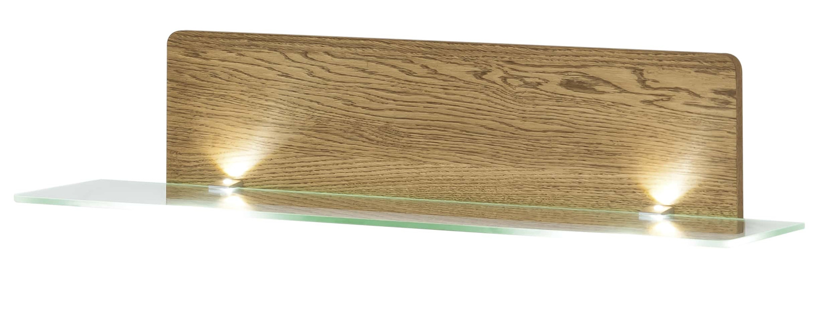 Moderní police Montenegro 34 vás zaujme svým elegantní designem. Je vyrobena z masivního dubové dřeva, přírodní dubové dýhy a skla.