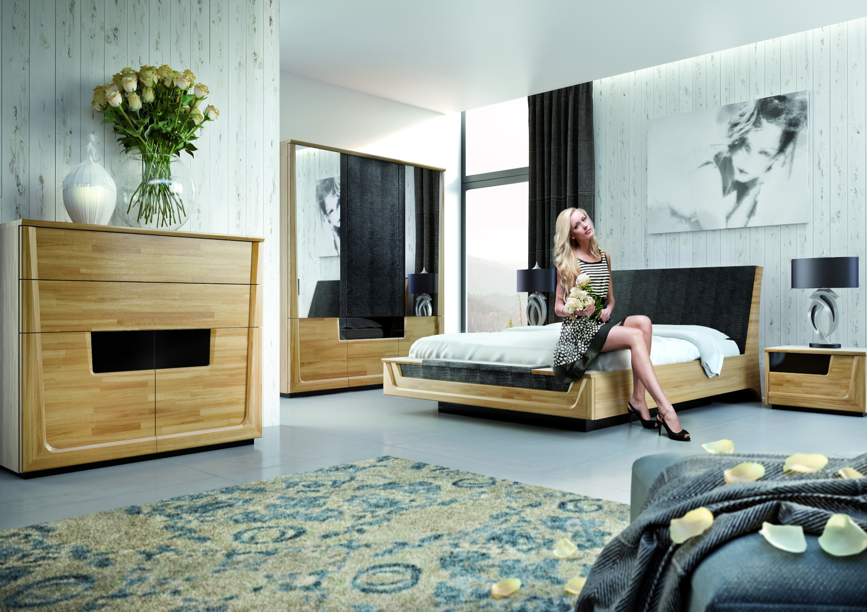 Postel Maganda II 140 cm vás zaujme svým moderním a luxusním designem. Je vyrobena z masivního dubového dřeva a přírodní dubové dýhy. Čelo a spodní část postele jsou částečně očalouněné potahovou látkou. Vzhledem k použitému materiálu se jedná o stabilní nábytek. Kvalitní technologie lakování a moření dodává nábytku přírodní vzhled a zvýrazňuje jeho léta. Máte možnost si vybrat ze 2 barevných variací moření dřeva.