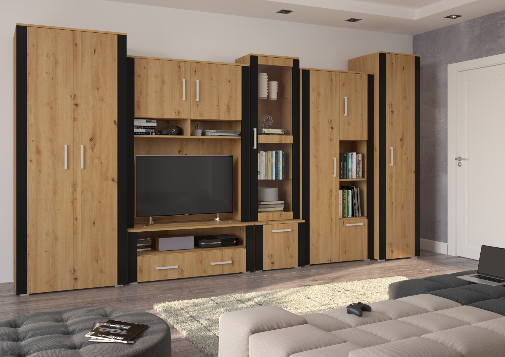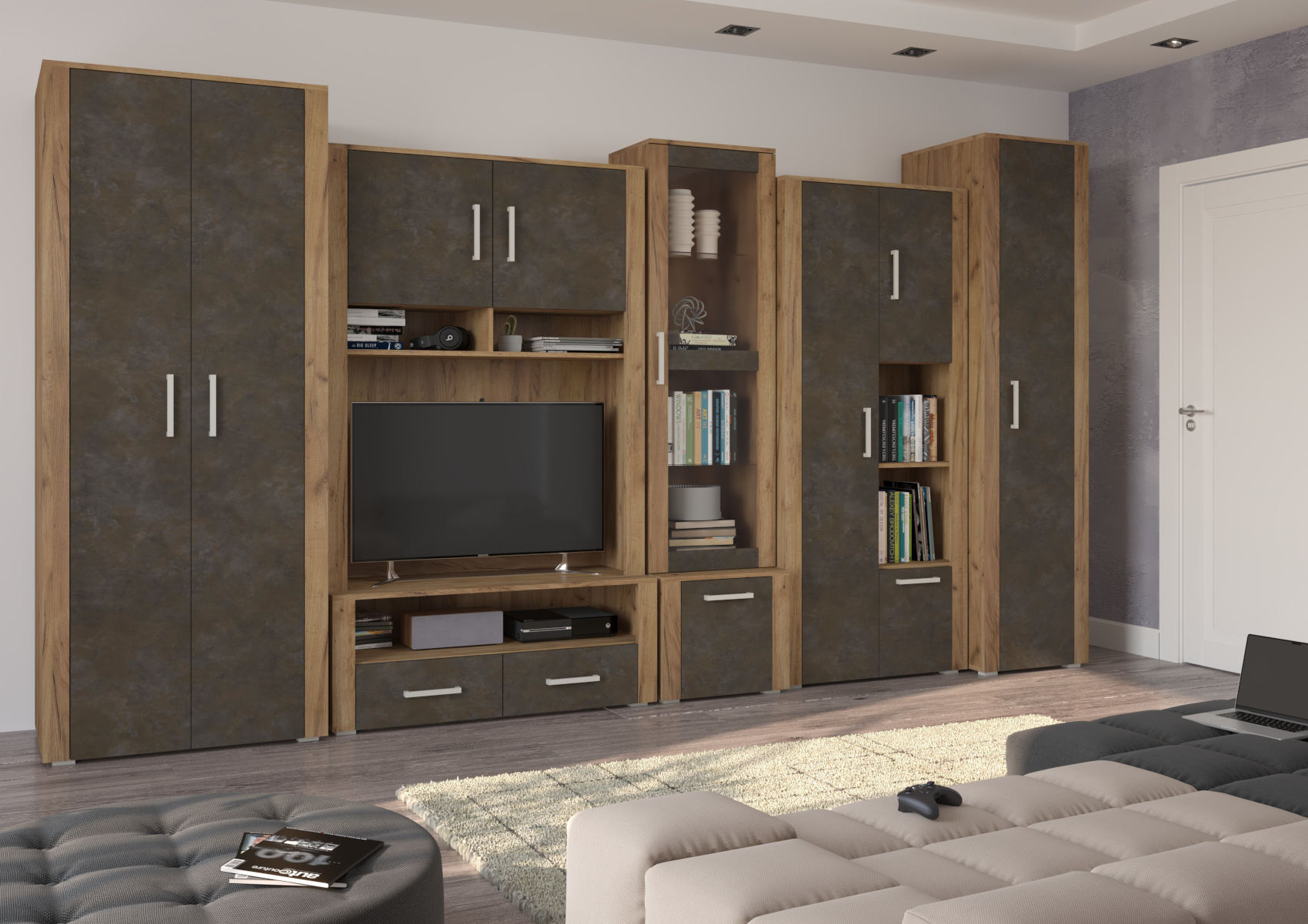 Regál 3D Notti 06 se skvěle hodí do moderně zařízených interiérů. Zaujme vás svým moderním designem s přírodními prvky. Je vyroben z kvalitních lamino desek o síle 16 mm. Příjemný design nábytku doplňují stříbrné úchytky z odolného tvrzeného plastu. Nabízíme vám několik barevných variant. Zajímavá kombinace barev dodává komodě ještě více na luxusu a nadčasovosti. Jednotlivé díly jsou variabilní, lze je navzájem kombinovat a vytvořit si tak svůj vysněný obývací pokoj.