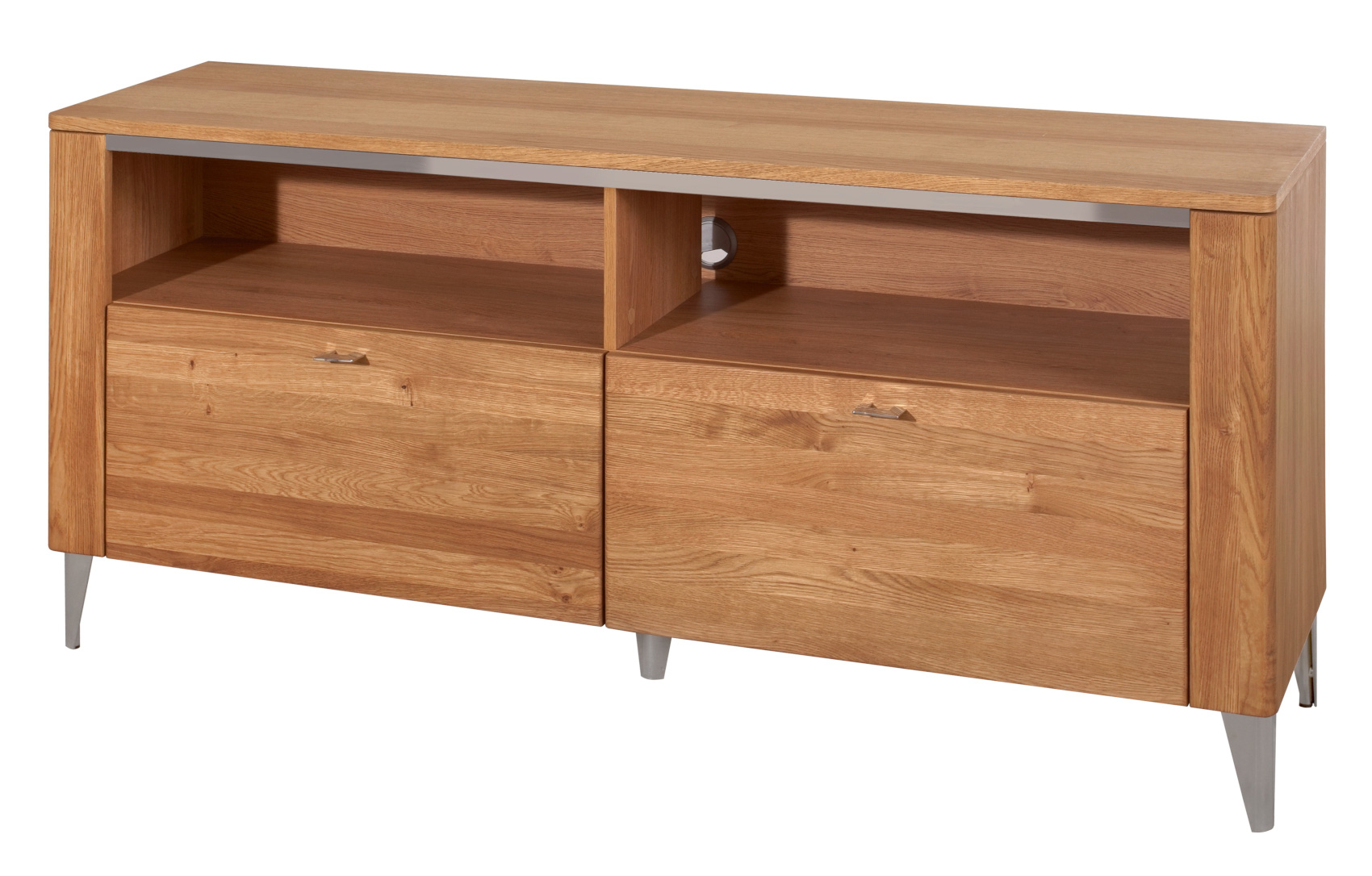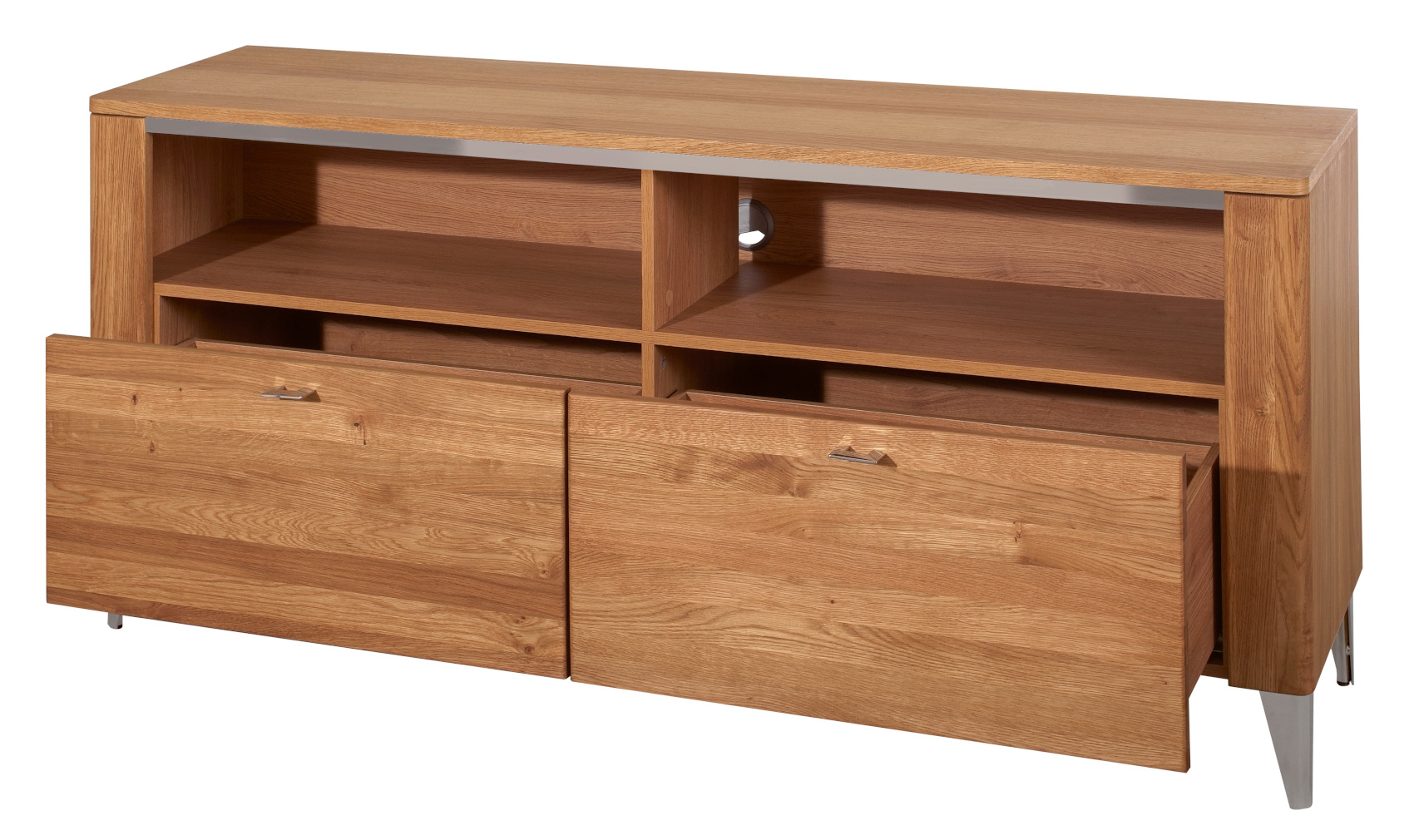 Moderní RTV stolek Latina vás zaujme svým přírodním designem se strukturou dřevěných lét a chromovými detaily. Přední část je vyrobena z masivního dubového dřeva a korpus z přírodní dubové dýhy. Stolek stojí na chromových nožkách, které provzdušní celý váš interiér a úchyty jsou vyrobeny také z chromu.