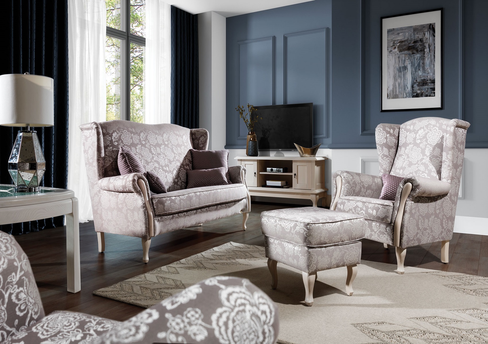 Sedací souprava Noble vás zaujme svým luxusním designem v zámeckém stylu. Součástí sestavy jsou 2 křesla a pohovka. Nábytek je vyroben z masivního jasanového dřeva, které je velmi odolné a vzhledem k jeho tvrdosti vám zaručí kvalitu a stabilitu.