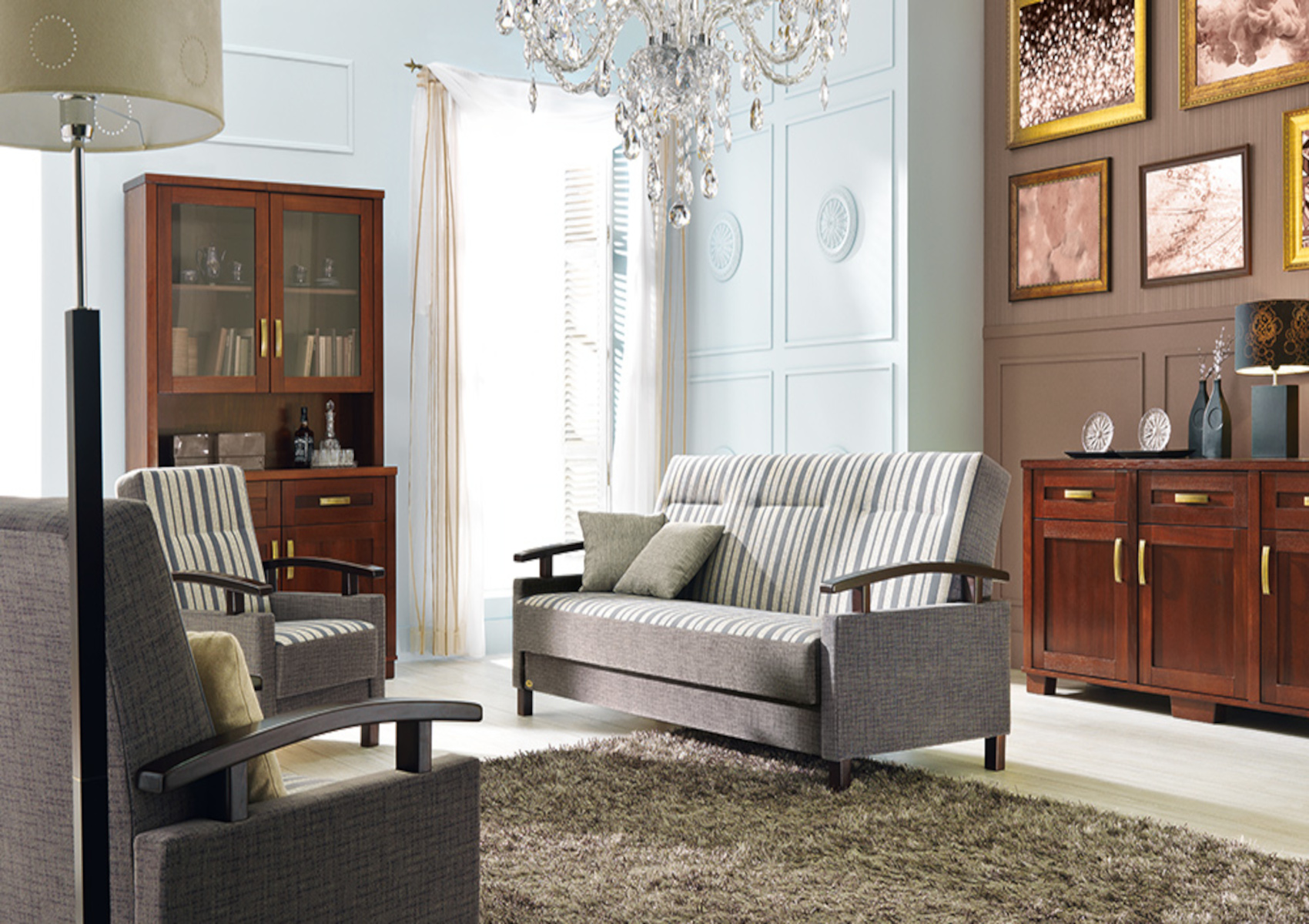 Sedací souprava Oliwia T je vyrobena v klasickém stylu s prvky elegance. Součástí sestavy jsou 2 křesla a pohovka s rozkládacím systémem a prostorem k uložení ložního prádla. Skelet nábytku je z masivního bukového dřeva, které je velmi odolné a vzhledem ke své tvrdosti vám zaručí kvalitu a stabilitu.