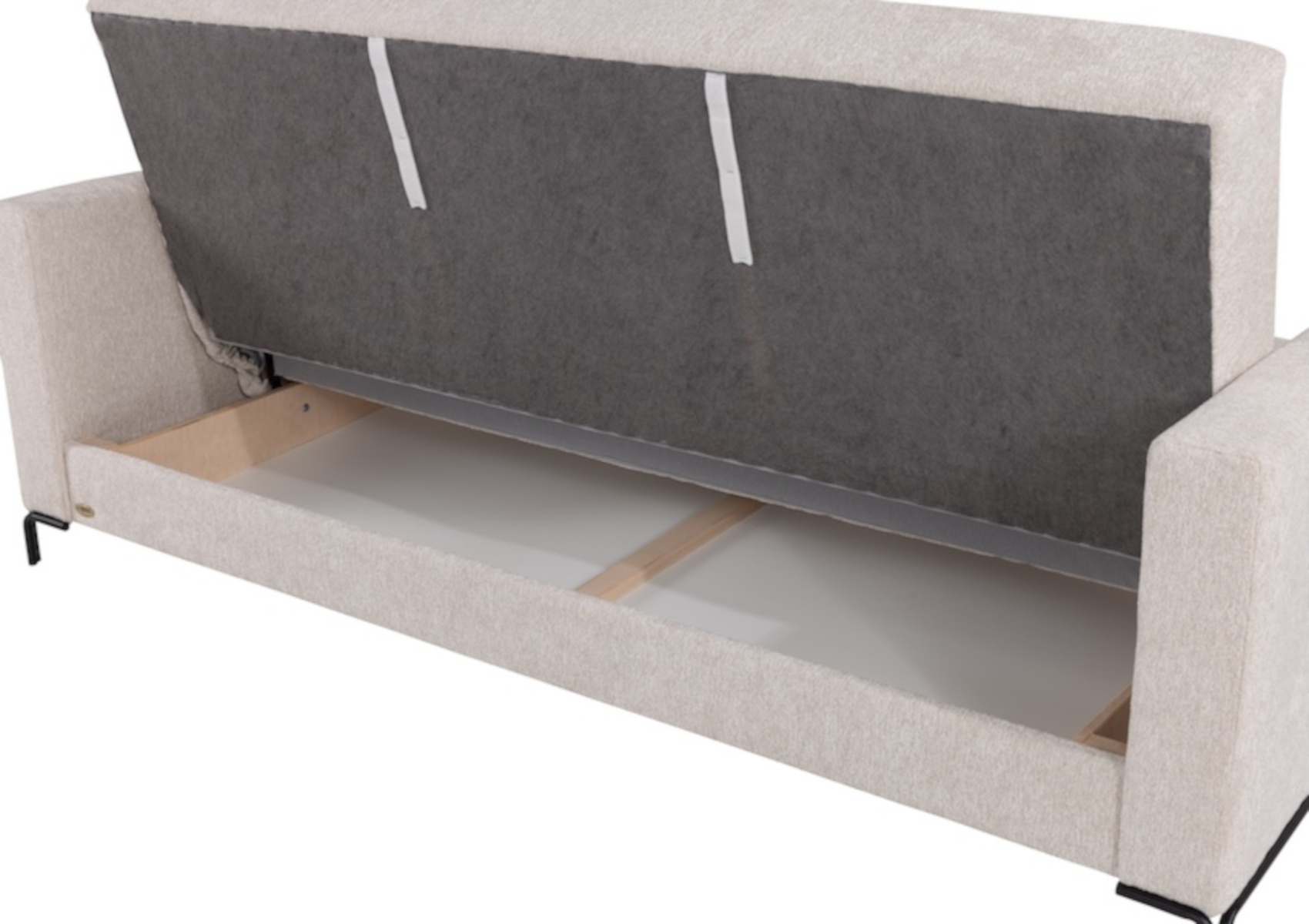 Rozkládací pohovka Aurora, CLIC-CLAC S ÚLOŽNÝM PROSTOREM A ČALOUNĚNÝMI ZÁDY, z bukového dřeva