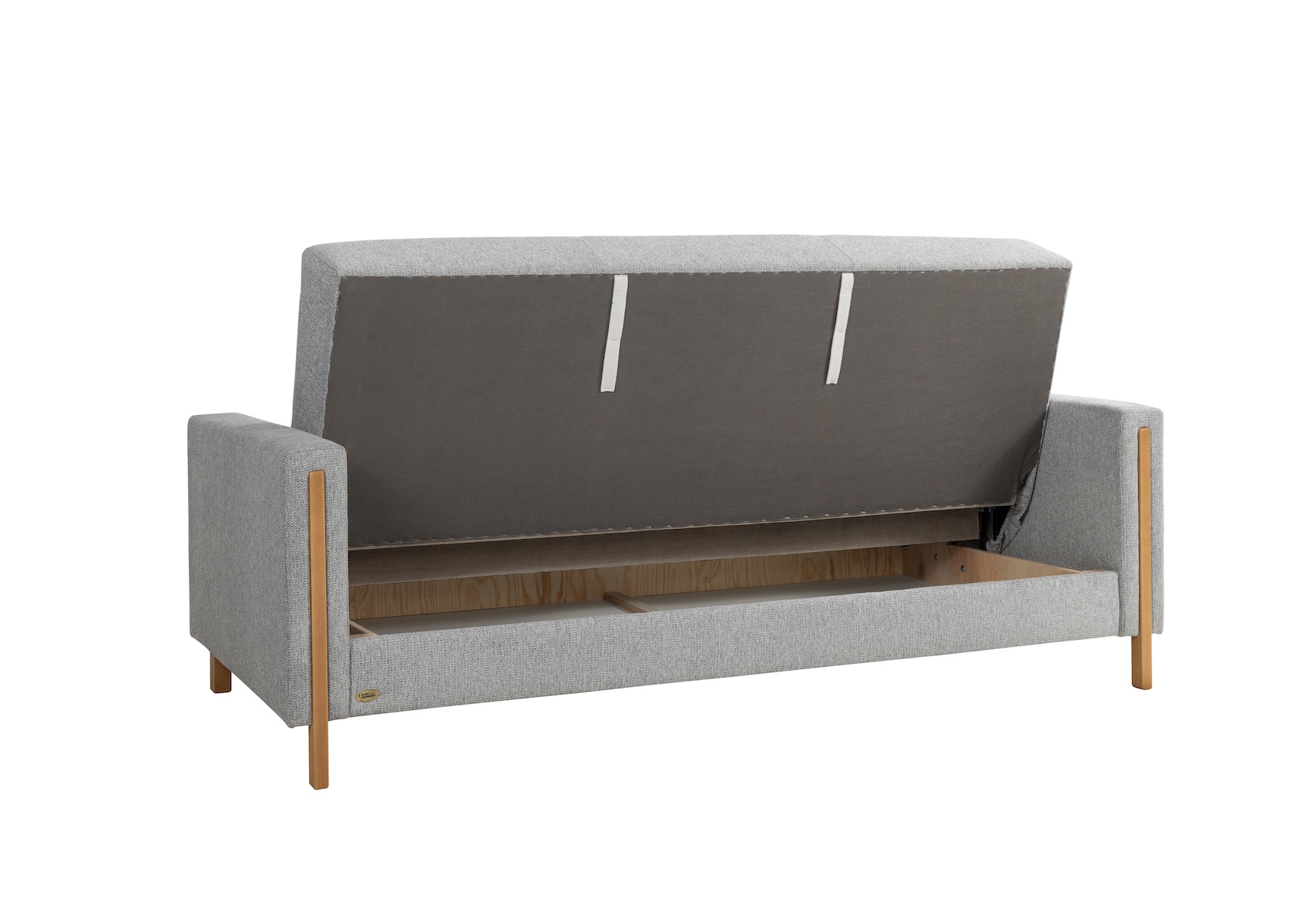 Rozkládací pohovka Maranta, CLIC-CLAC S ÚLOŽNÝM PROSTOREM A ČALOUNĚNÝMI ZÁDY, z bukového dřeva