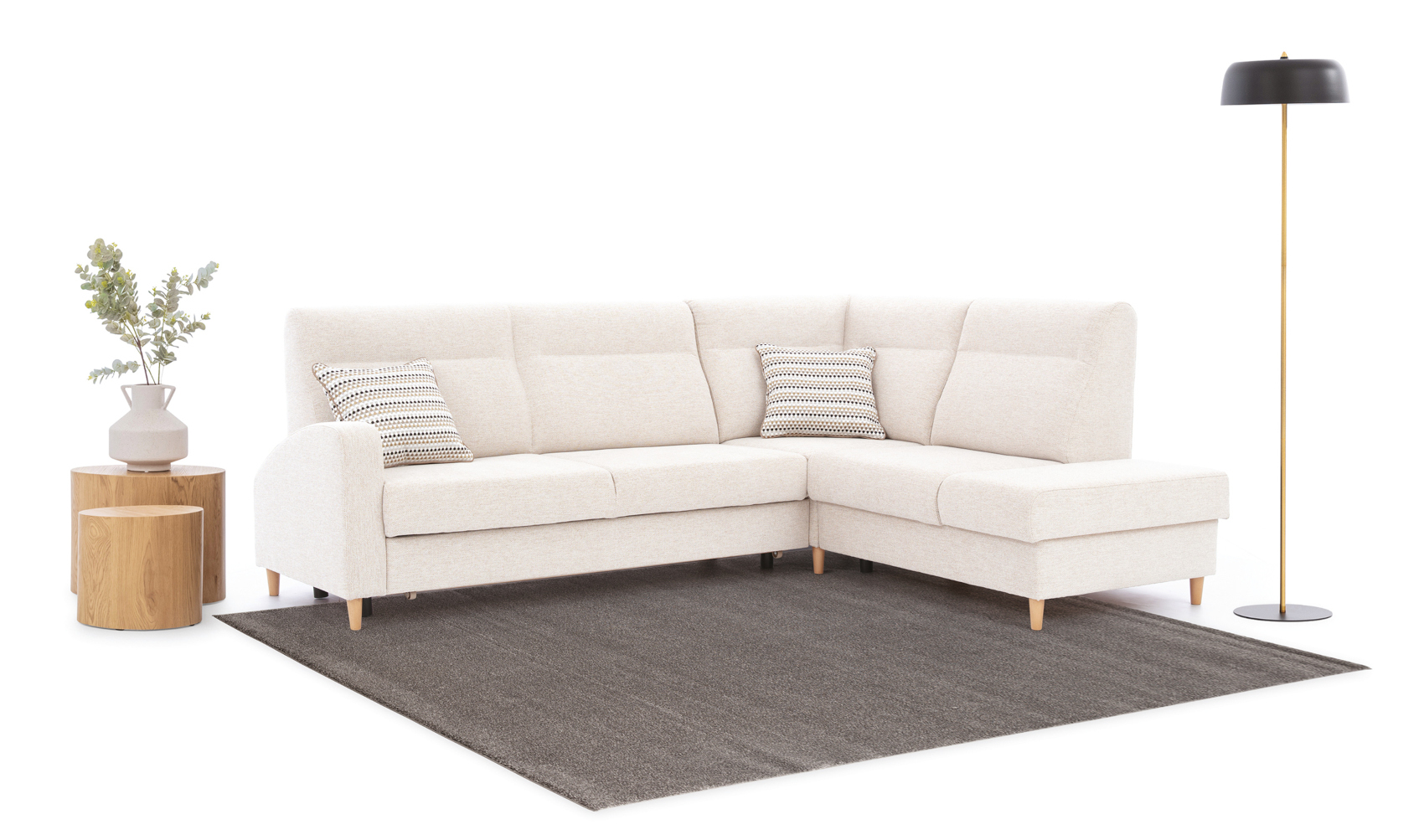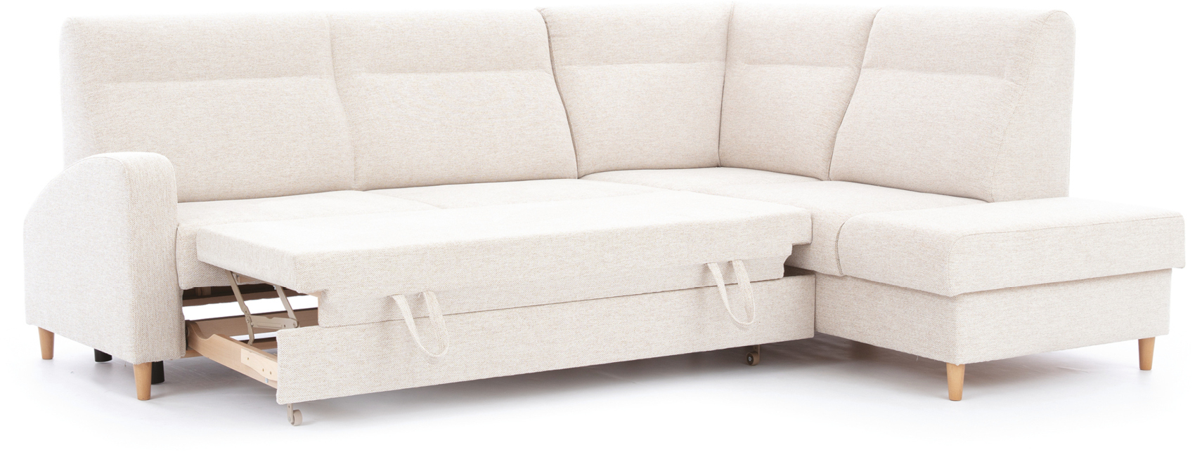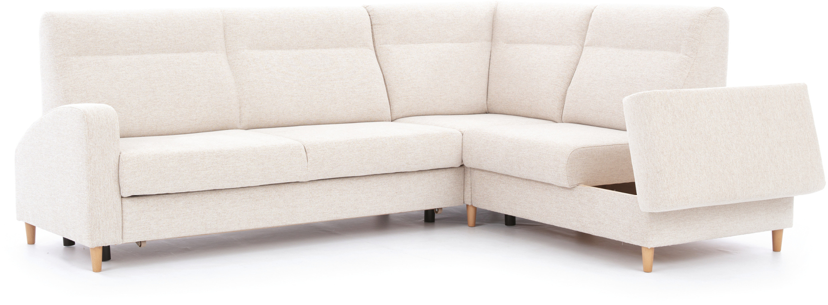 Rohová sedací souprava Boretto s rozkladem a ÚP, z bukového dřeva