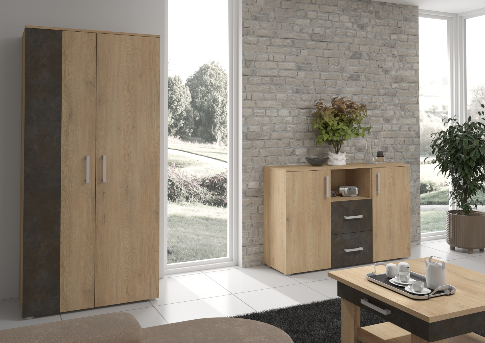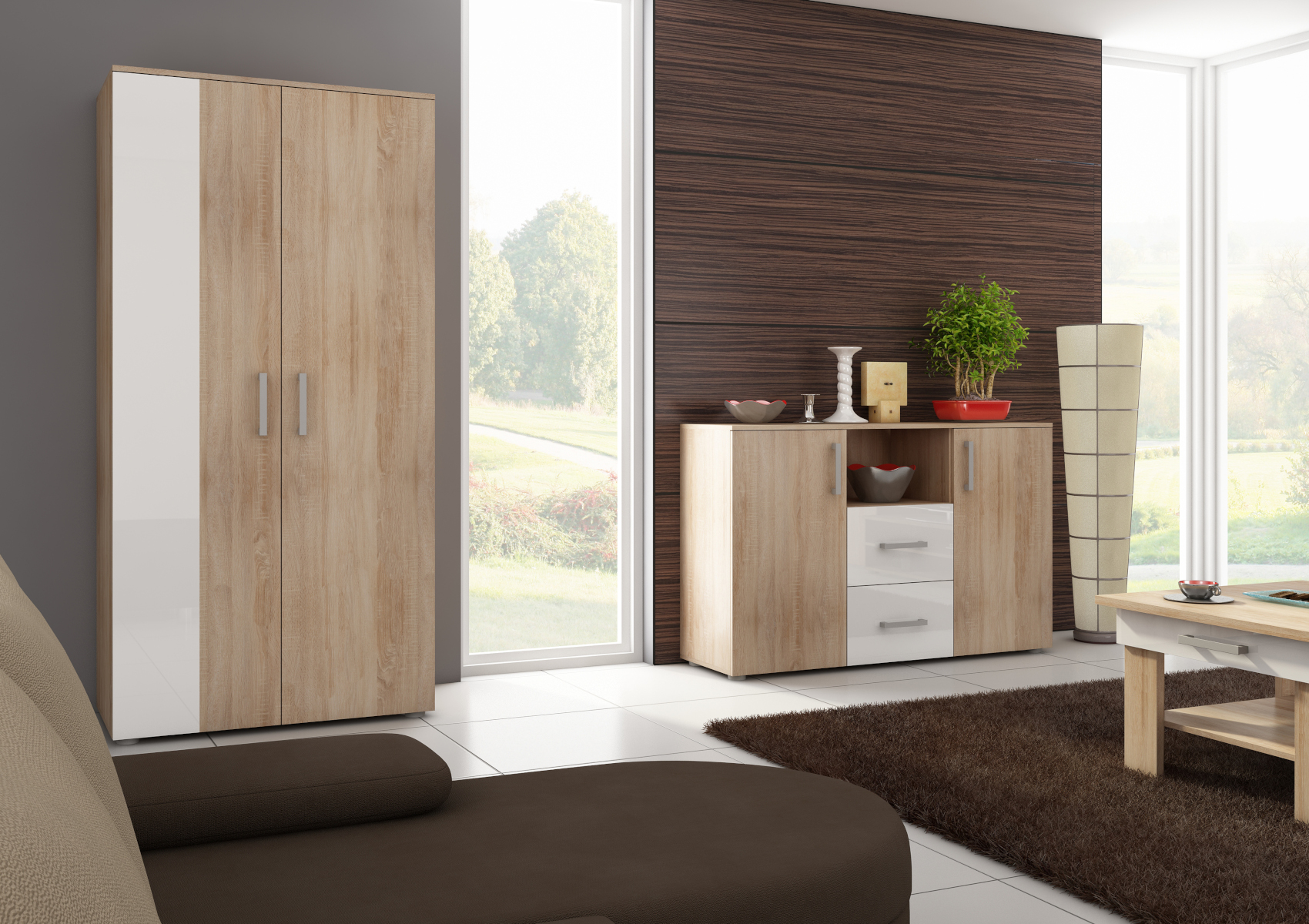 Skříň Stella 05 se skvěle hodí do moderně zařízených interiérů. Zaujme vás svým moderním designem s přírodními prvky. Je vyrobena z kvalitních lamino desek o síle 16 mm. Příjemný design nábytku doplňují stříbrné úchytky z odolného tvrzeného plastu. Nabízíme vám několik barevných variant. Zajímavá kombinace barev dodává skříni ještě více na luxusu a nadčasovosti. Jednotlivé díly jsou variabilní, lze je navzájem kombinovat a vytvořit si tak svůj vysněný obývací pokoj.