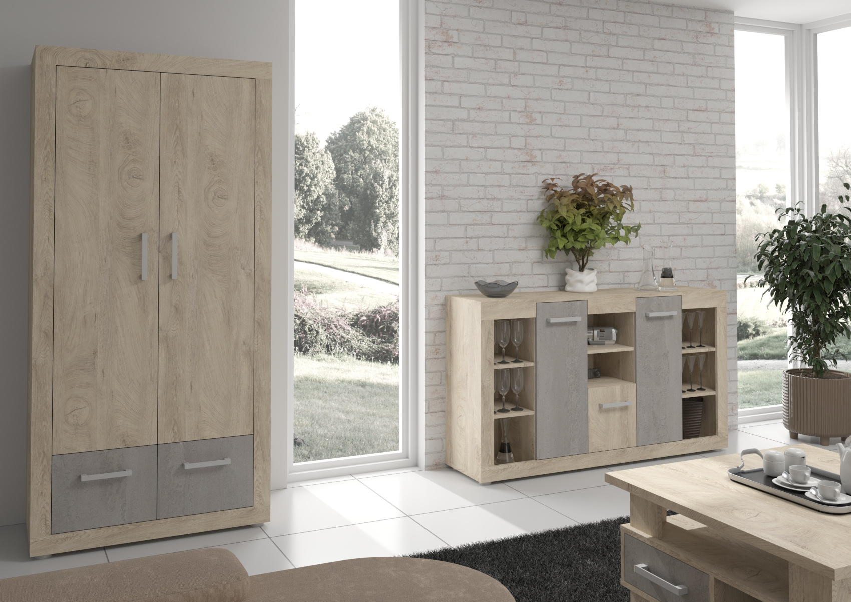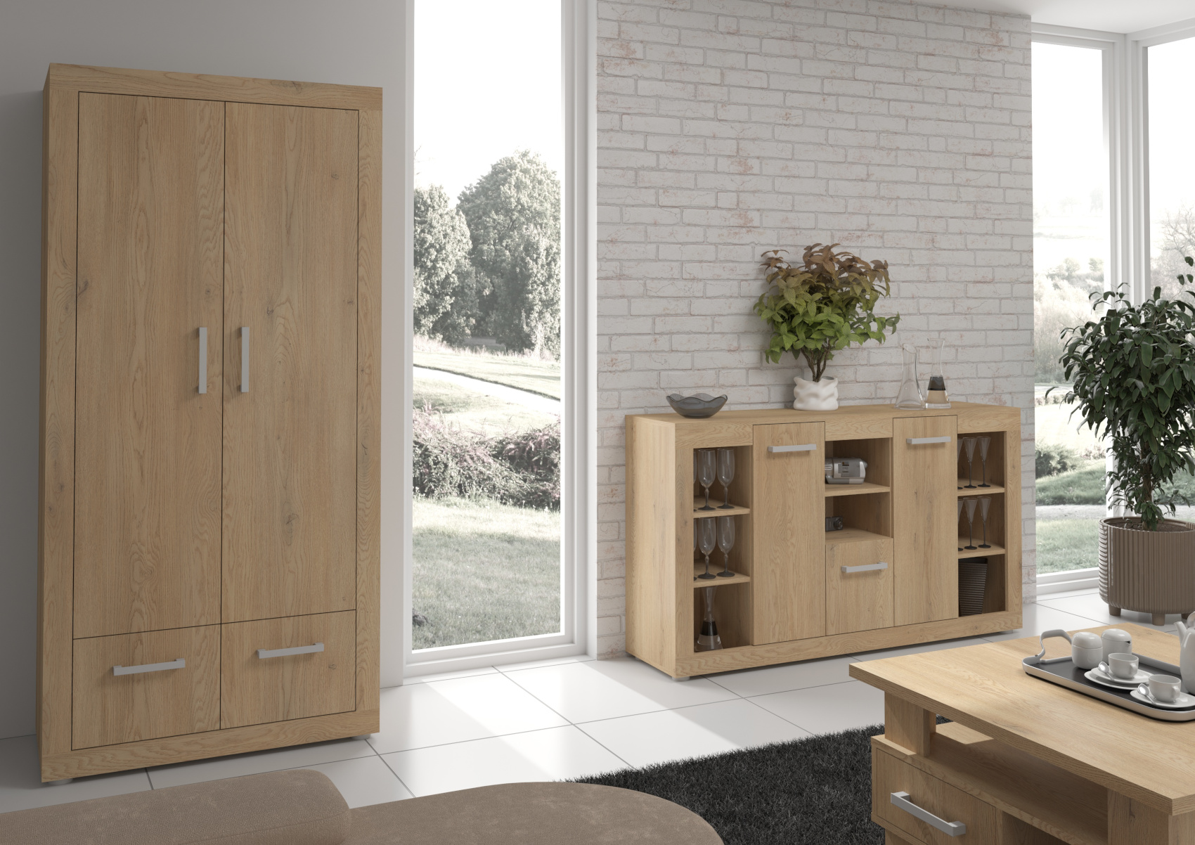 Skříň Viky 05 se skvěle hodí do moderně zařízených interiérů. Zaujme vás svým neobvyklým avšak moderním designem a přírodním provedením. Je vyrobena z kvalitních lamino desek o síle 16 mm a 25 mm. Nabízíme vám několik barevných variant. Zajímavý design barev dodává skříni ještě více na luxusu a nadčasovosti. Jednotlivé díly jsou variabilní, lze je navzájem kombinovat a vytvořit si tak ložnici či obývací pokoj podle svých představ.