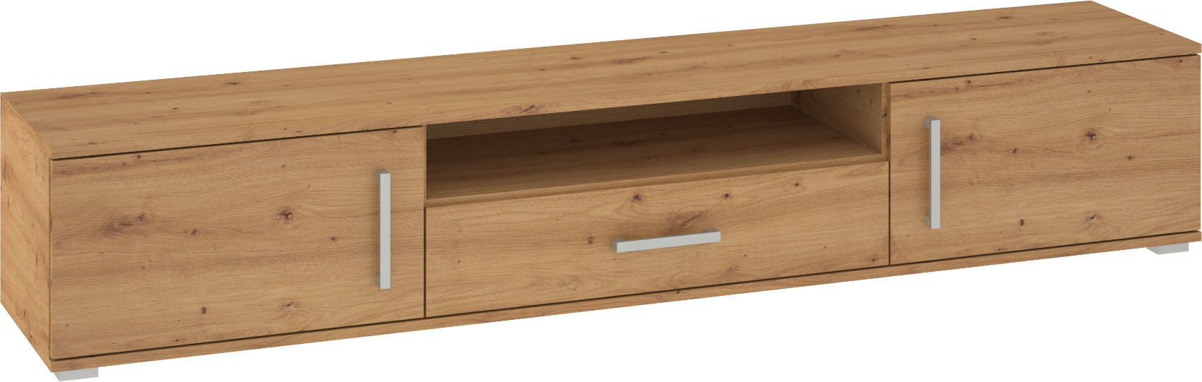Televizní stolek Solar 04 se skvěle hodí do moderně zařízených interiérů. Zaujme vás svým neobvyklým avšak moderním designem a přírodním provedením. Je vyroben z kvalitních lamino desek o síle 16 mm. Příjemný design nábytku doplňují stříbrné úchytky z odolného tvrzeného plastu. Nabízíme vám několik barevných variant. Zajímavý design barev dodává stolku ještě více na luxusu a nadčasovosti. Jednotlivé díly jsou variabilní, lze je navzájem kombinovat a vytvořit si tak pracovnu či vysněný obývací pokoj. Máte možnost si vybrat lesklou variantu za příplatek.