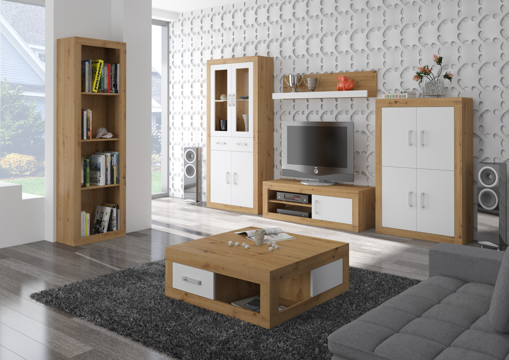 Televizní stolek Verin 1D 21 se skvěle hodí do moderně zařízených interiérů. Zaujme vás svým neobvyklým avšak moderním designem a přírodním provedením. Je vyroben z kvalitních lamino desek o síle 16 mm. Nabízíme vám několik barevných variant. Zajímavý design barev dodává stolku ještě více na luxusu a nadčasovosti. Jednotlivé díly jsou variabilní, lze je navzájem kombinovat a vytvořit si tak obývací sestavu podle svých představ.