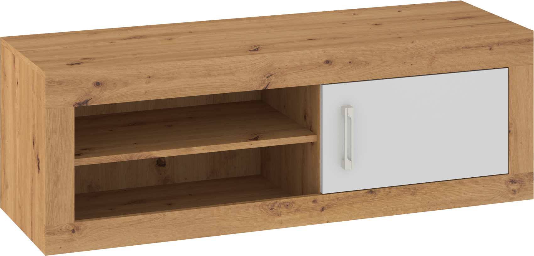 V pravé části jsou 1 plná dvířka. V levé části se nachází 2 otevřené niky k uložení elektroniky či jiných nezbytností.