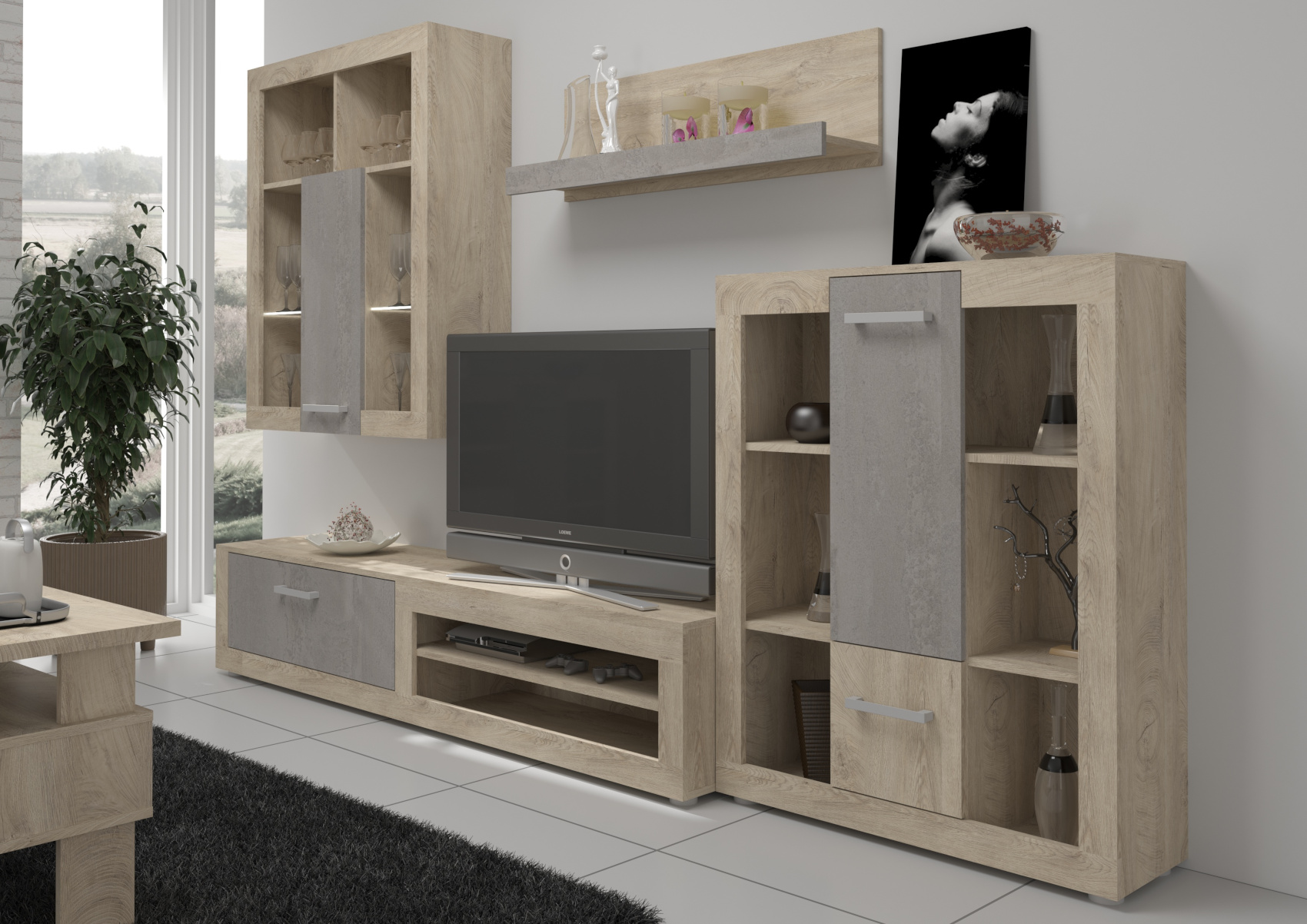 Televizní stolek Viky 04 se skvěle hodí do moderně zařízených interiérů. Zaujme vás svým neobvyklým avšak moderním designem a přírodním provedením. Je vyroben z kvalitních lamino desek o síle 16 mm a 25 mm. Nabízíme vám několik barevných variant. Zajímavý design barev dodává stolku ještě více na luxusu a nadčasovosti. Jednotlivé díly jsou variabilní, lze je navzájem kombinovat a vytvořit si tak ložnici či obývací pokoj podle svých představ.