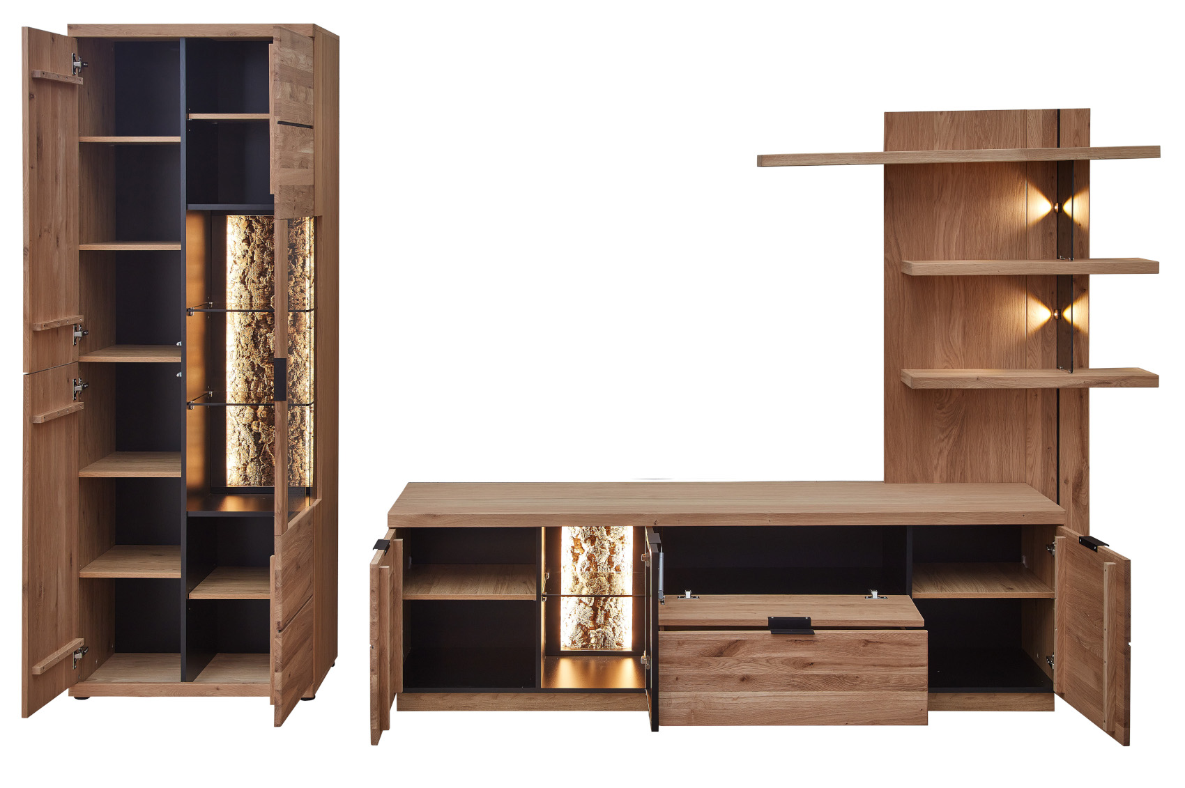 V ceně je zahrnuto LED osvětlení skleněných polic, které dodá nábytku nádech luxusu a navodí příjemnou večerní atmosféru.
