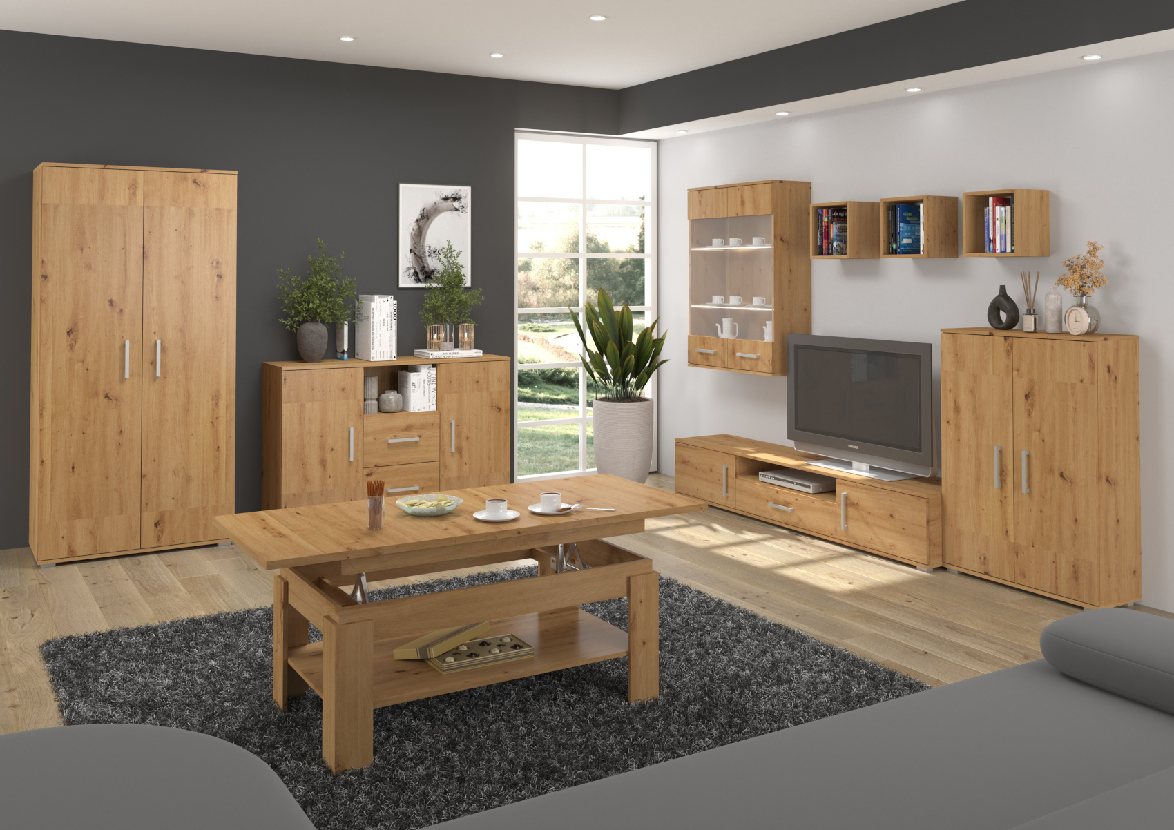 Závěsná skříňka Solar 06 se skvěle hodí do moderně zařízených interiérů. Zaujme vás svým neobvyklým avšak moderním designem a přírodním provedením. Je vyrobena z kvalitních lamino desek o síle 16 mm. Příjemný design nábytku doplňují stříbrné úchytky z odolného tvrzeného plastu. Nabízíme vám několik barevných variant. Zajímavý design barev dodává skříňce ještě více na luxusu a nadčasovosti. Jednotlivé díly jsou variabilní, lze je navzájem kombinovat a vytvořit si tak pracovnu či vysněný obývací pokoj. Máte možnost si vybrat lesklou variantu za příplatek.