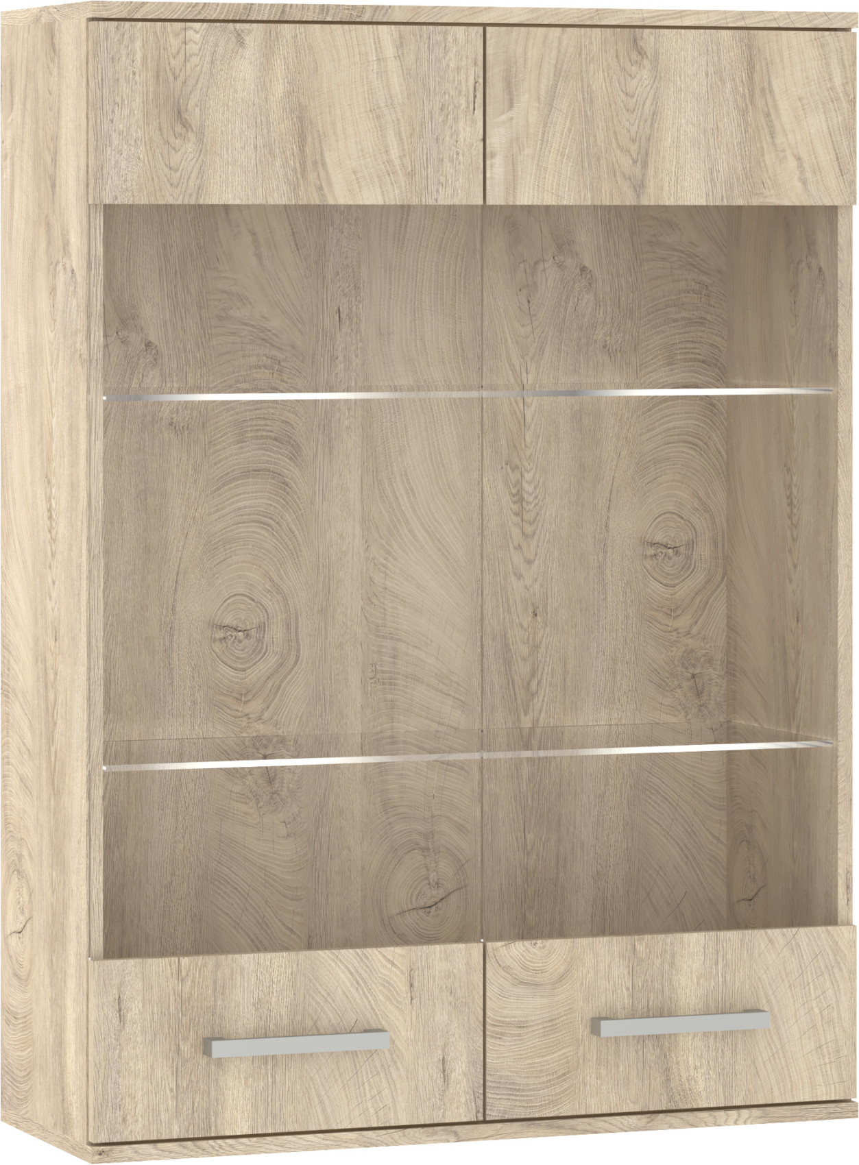 Součástí skříňky jsou 2 prosklená dvířka. Za nimi jsou vloženy 2 skleněné police.