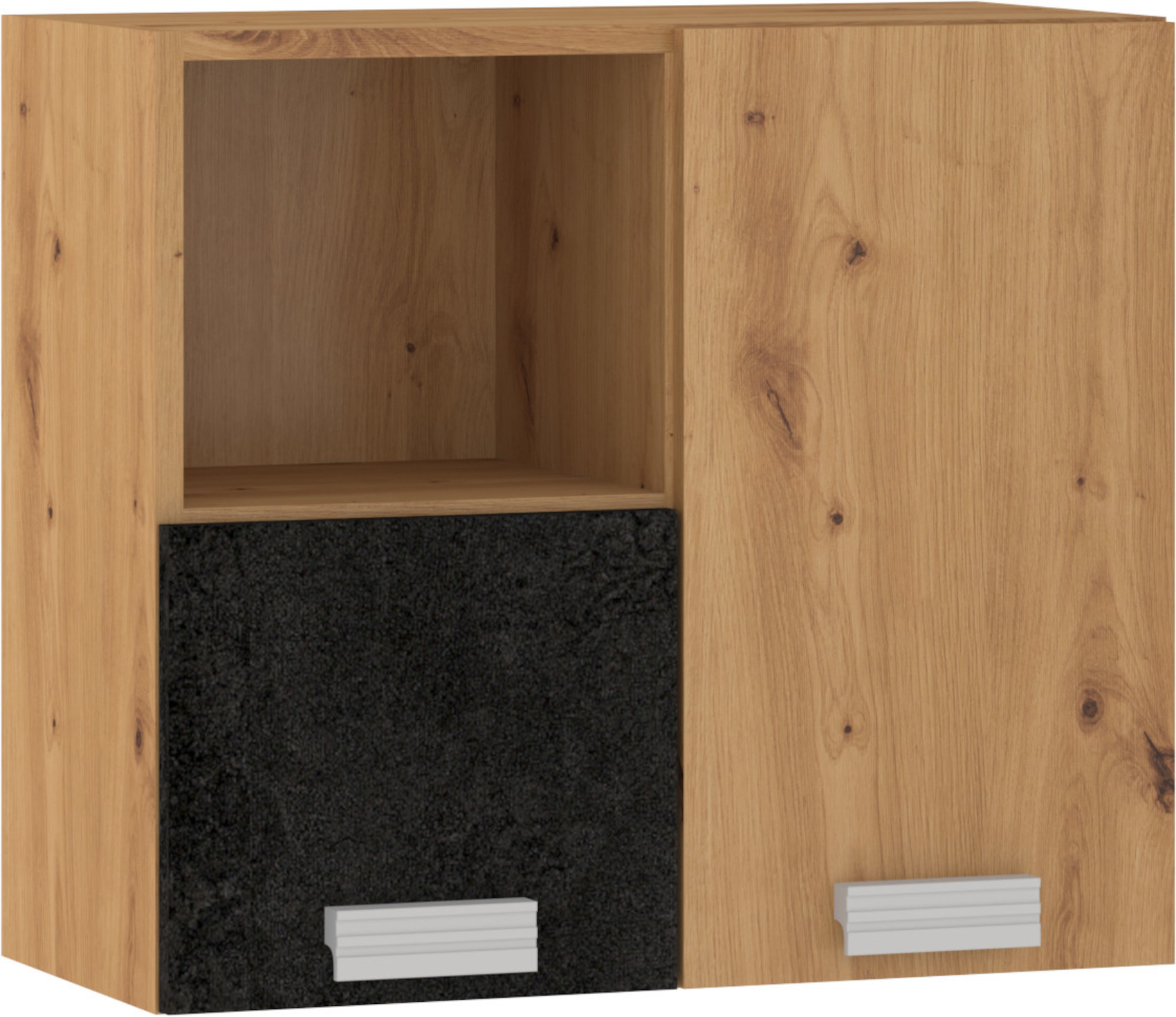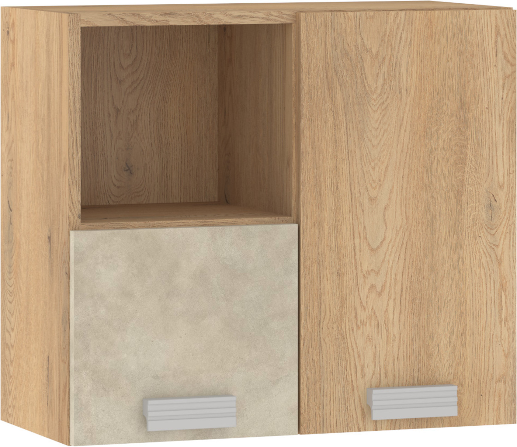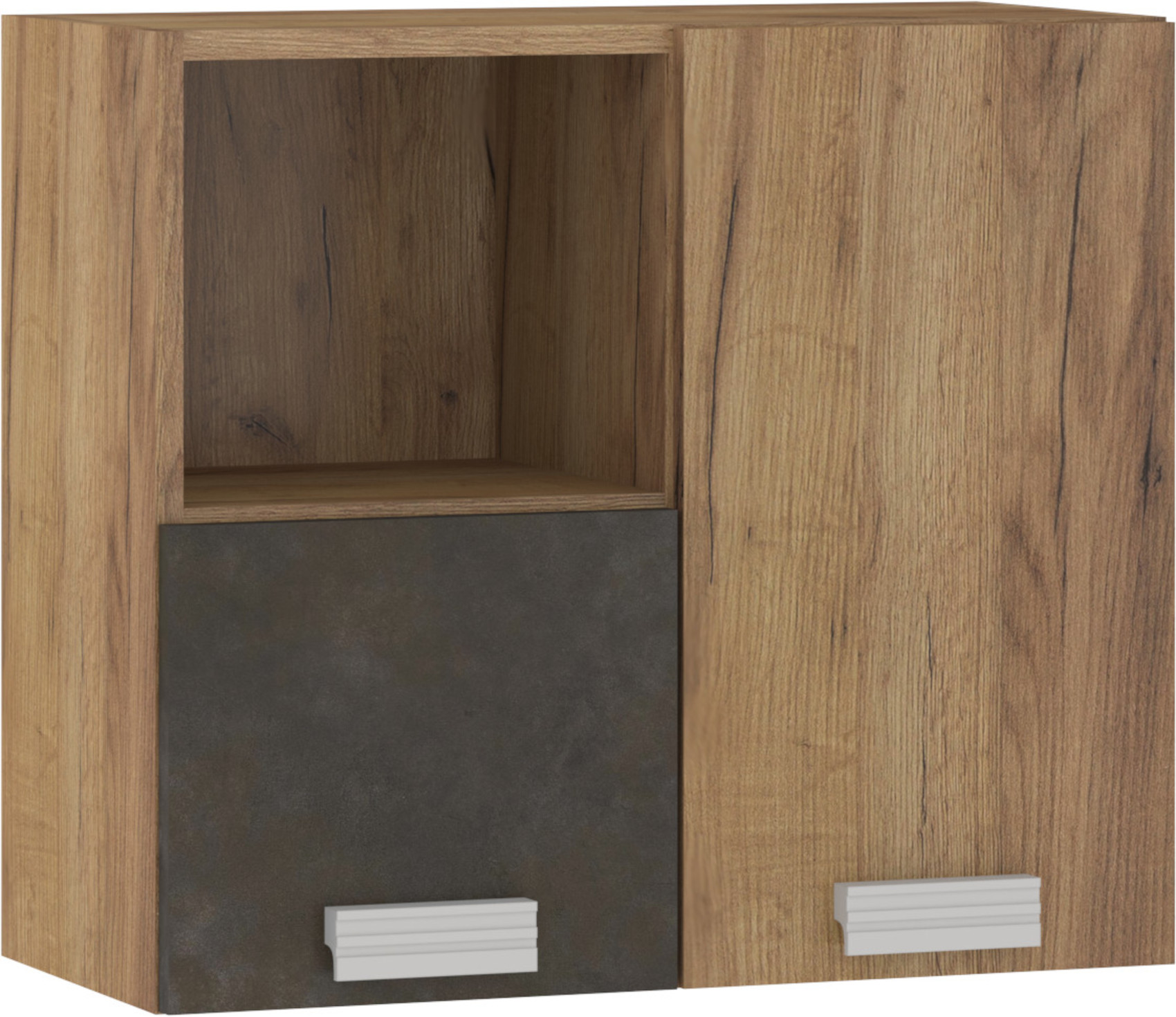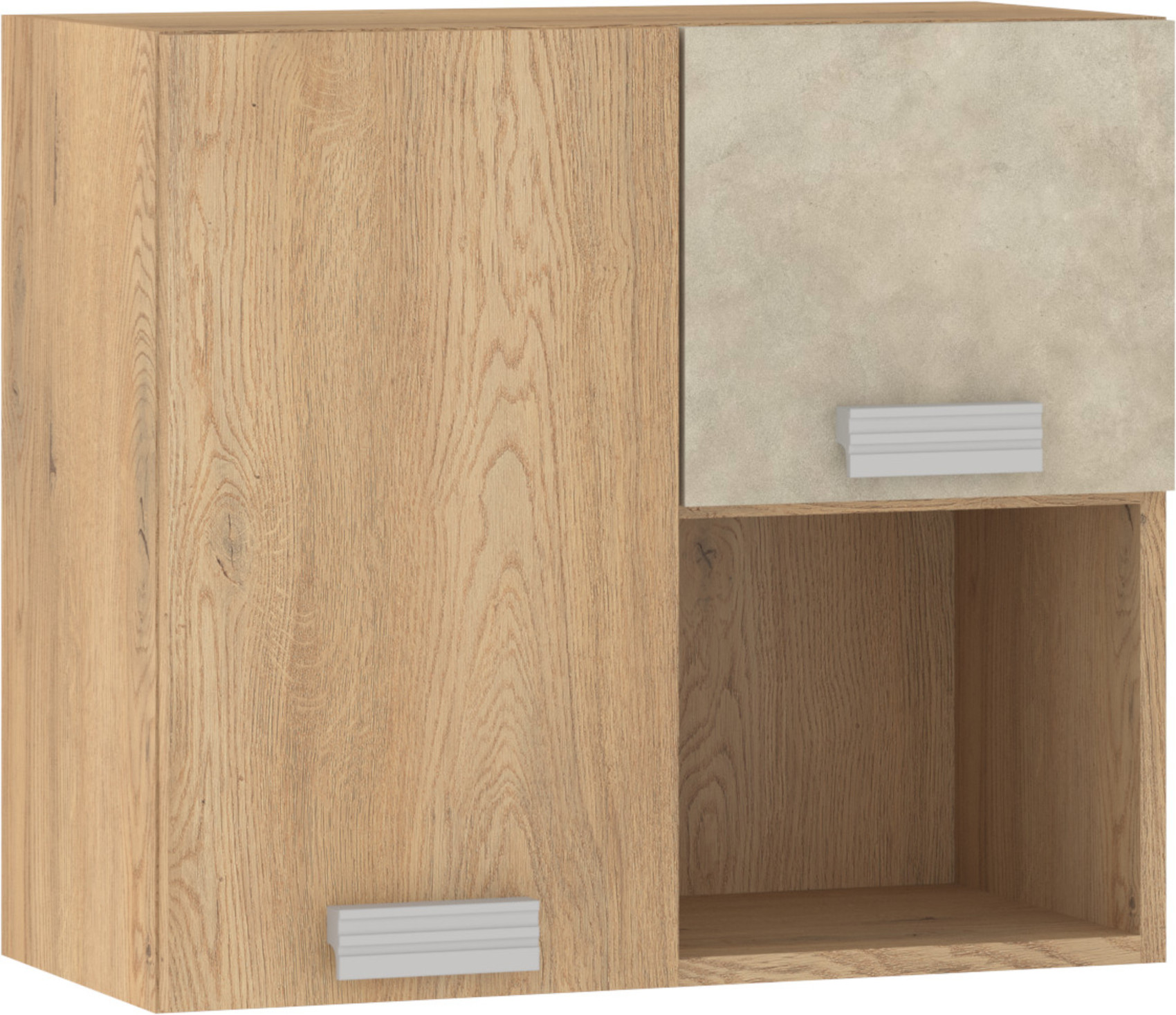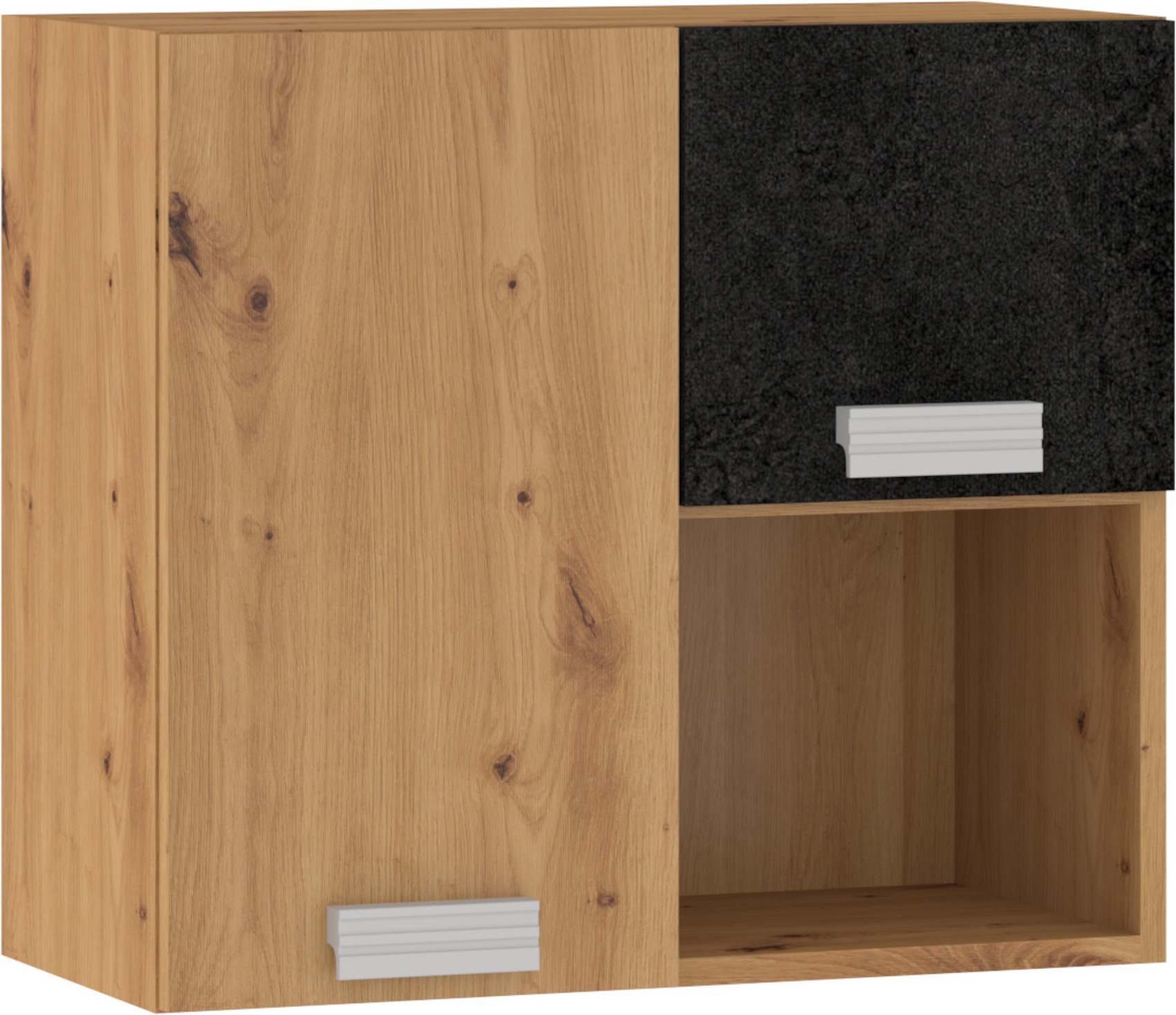 Součástí jsou 3 plná dvířka, za kterými je vložena 1 lakovaná police. V horní nebo spodní části (záleží na vaší volbě montování) je otevřená nika k vystavení vašich oblíbených knih, dekorací či rámečků s fotografiemi.