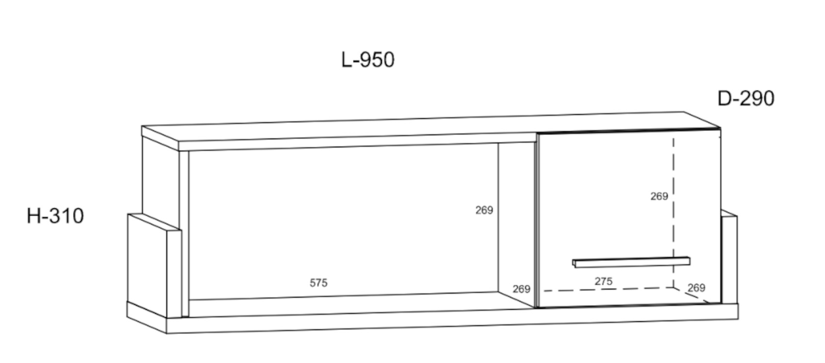 Součástí skříňky jsou 1 dvířka a otevřená nika k vystavení vašich oblíbených dekorací. Skříňku můžete namontovat s dvířky na pravé či na levé straně.