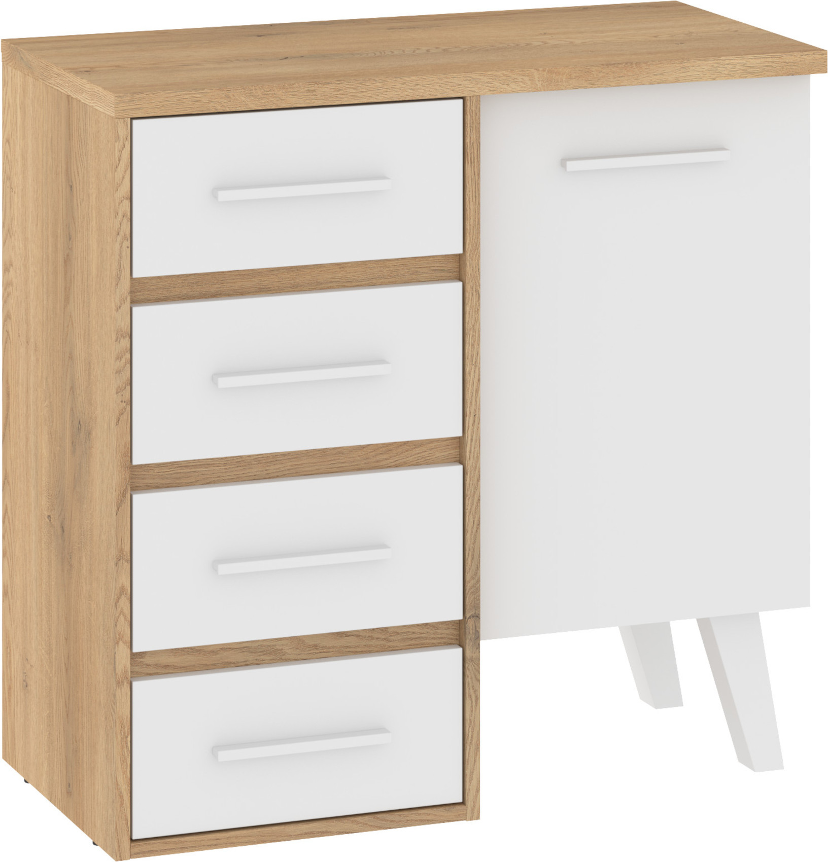 Komoda Nordis 03 stylově doplní vaši domácnost. 4 praktické zásuvky a skříňka s poličkou vám poskytnu dostatek úložného prostoru.