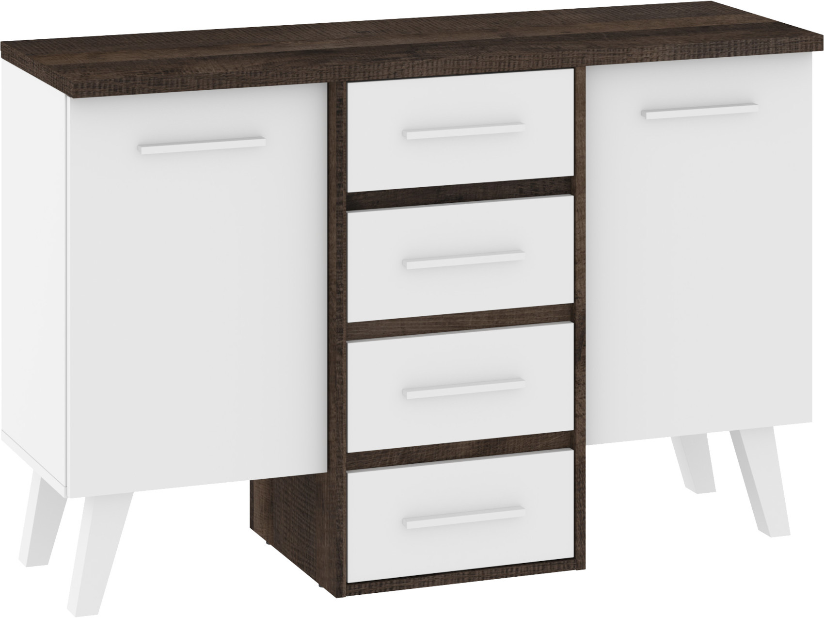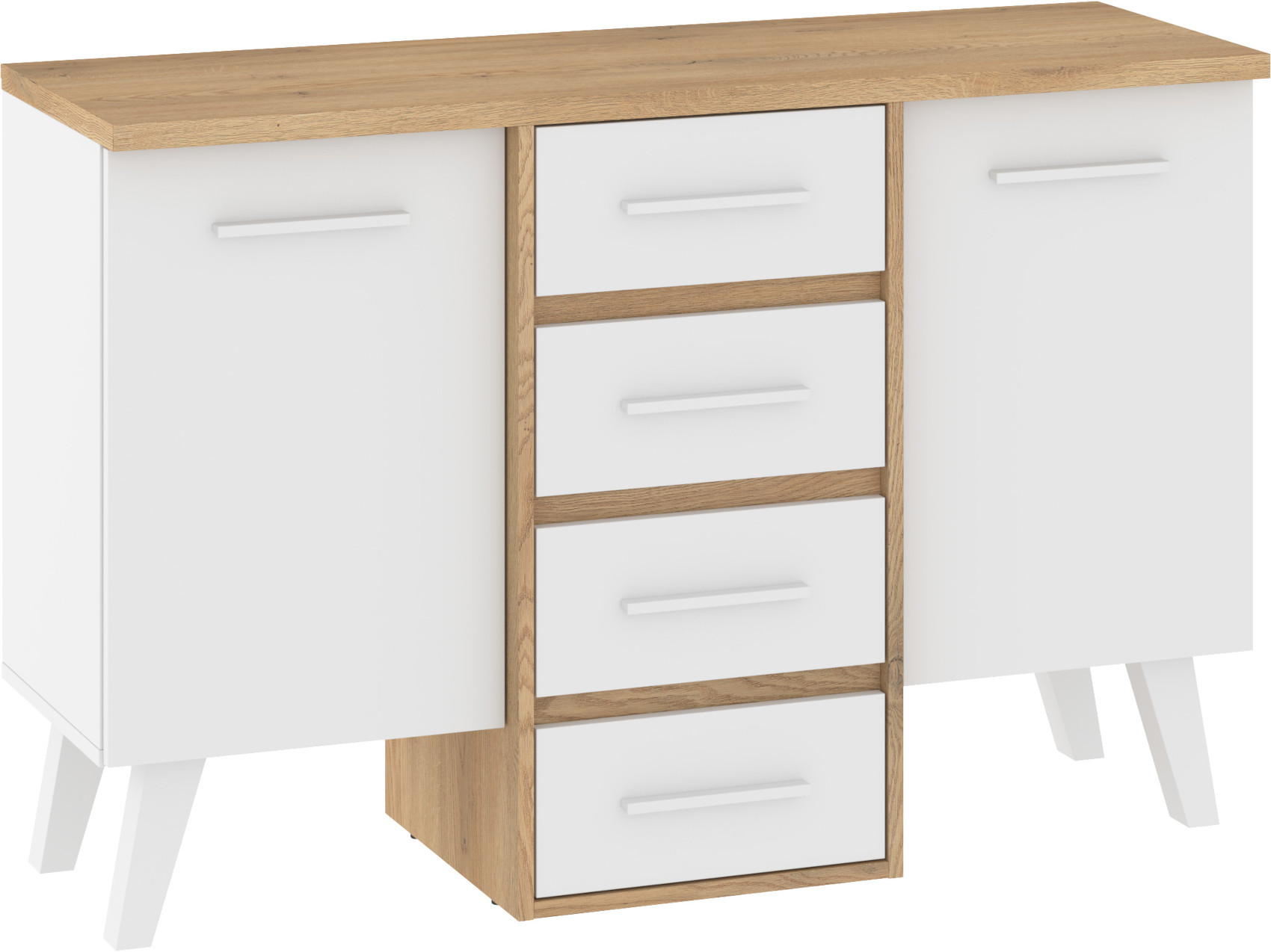 Komoda Nordis 04 stylově doplní vaši domácnost. 4 praktické zásuvky a 2 skříňky s poličkou vám poskytnou dostatek úložného prostoru.