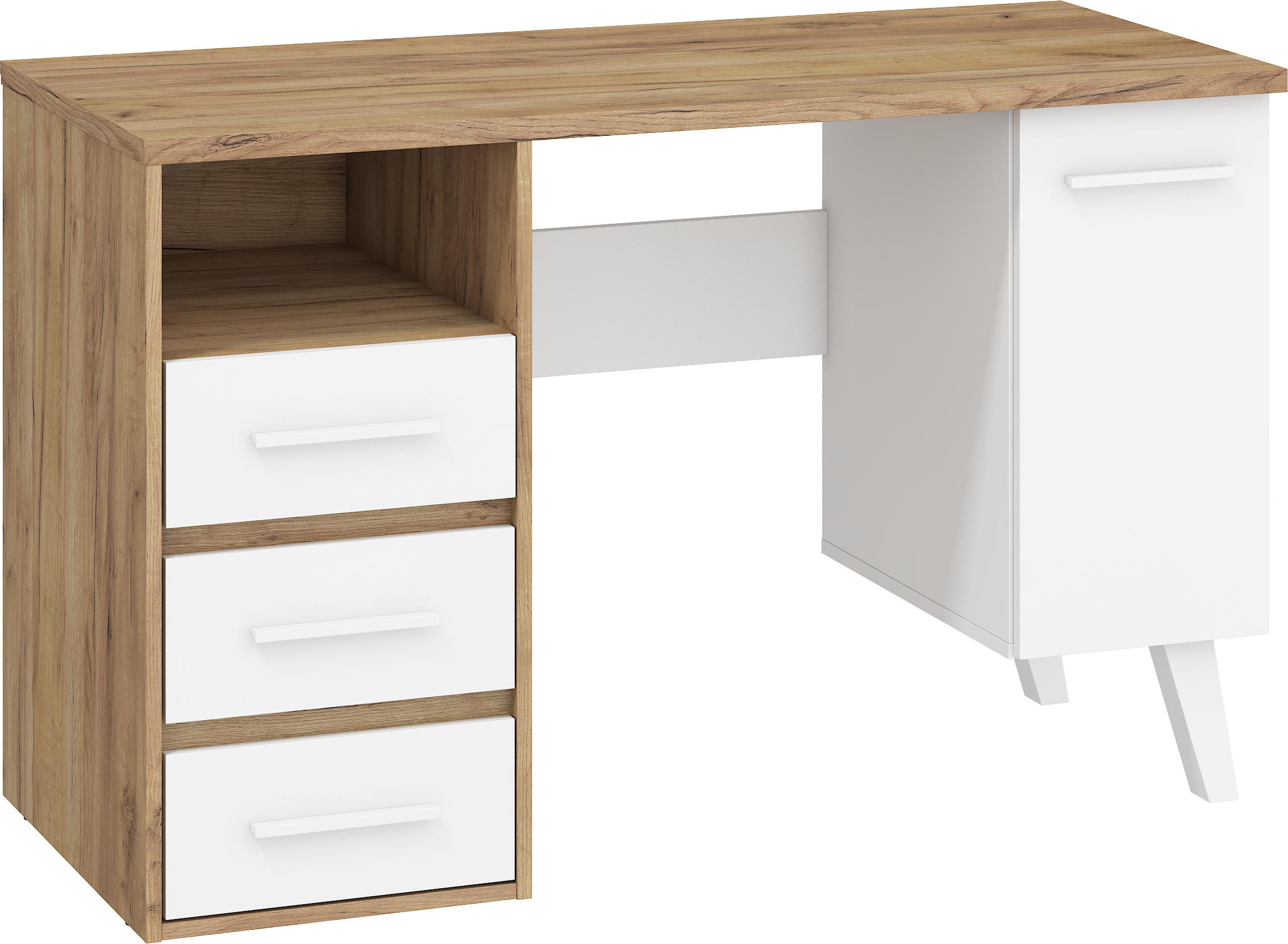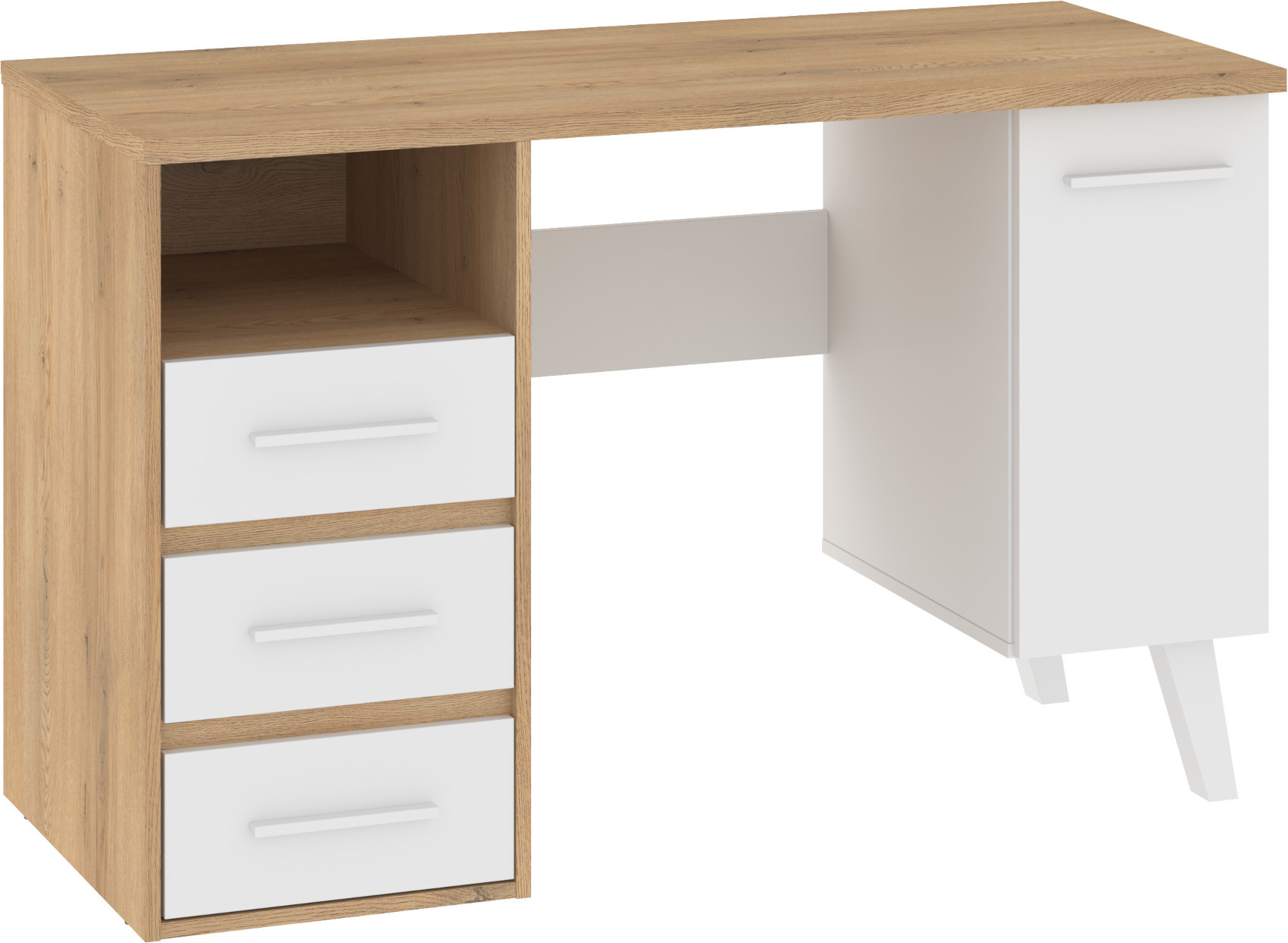Psací stůl Nordis 01 stylově doplní vaši domácnost. 3 praktické zásuvky a skříňka se 2 poličkami vám poskytnu dostatek úložného prostoru.