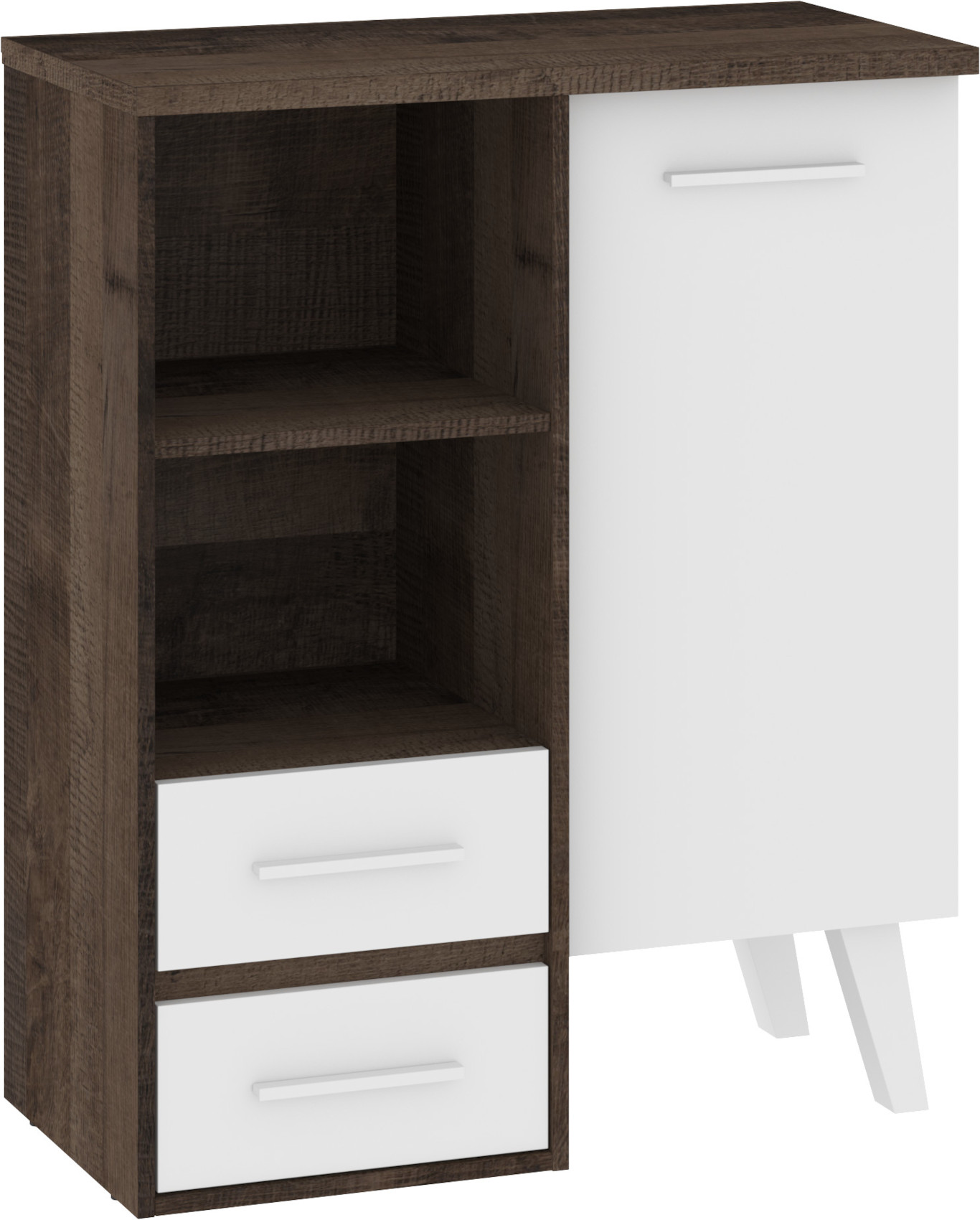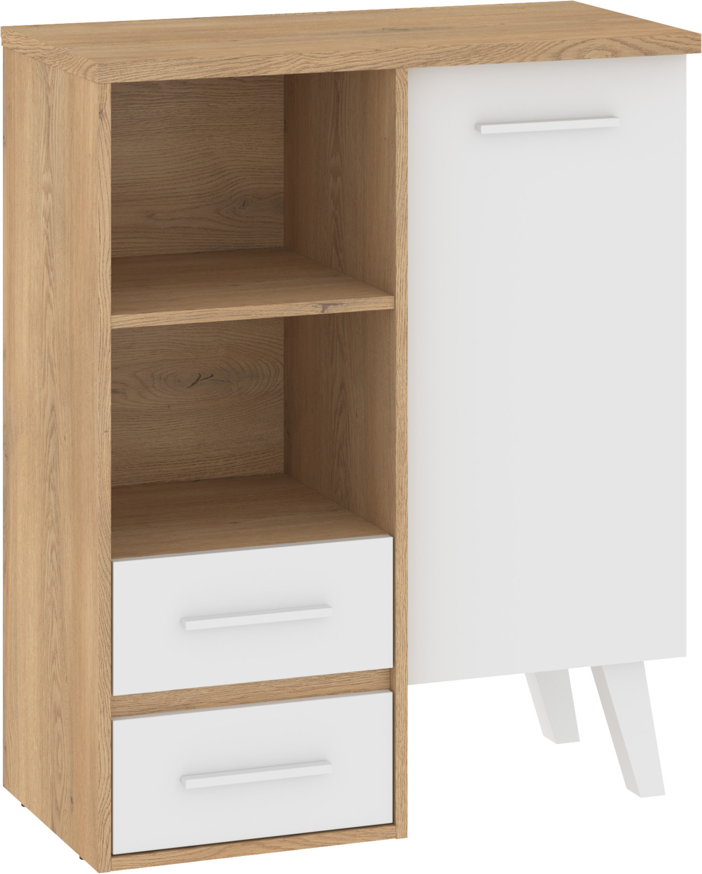 Regál Nordis 10 stylově doplní vaši domácnost. Regál má skříňku s dvířky, 2 zásuvky a 2 prostory, kam si můžete uložit například oblíbené knížky.
