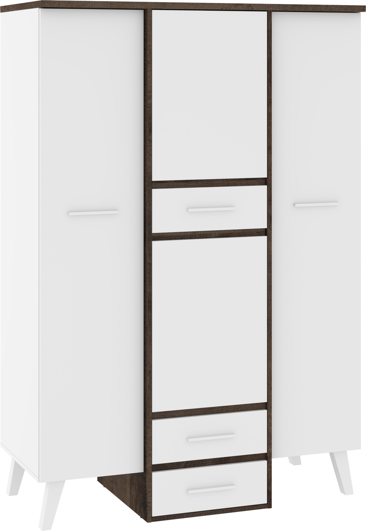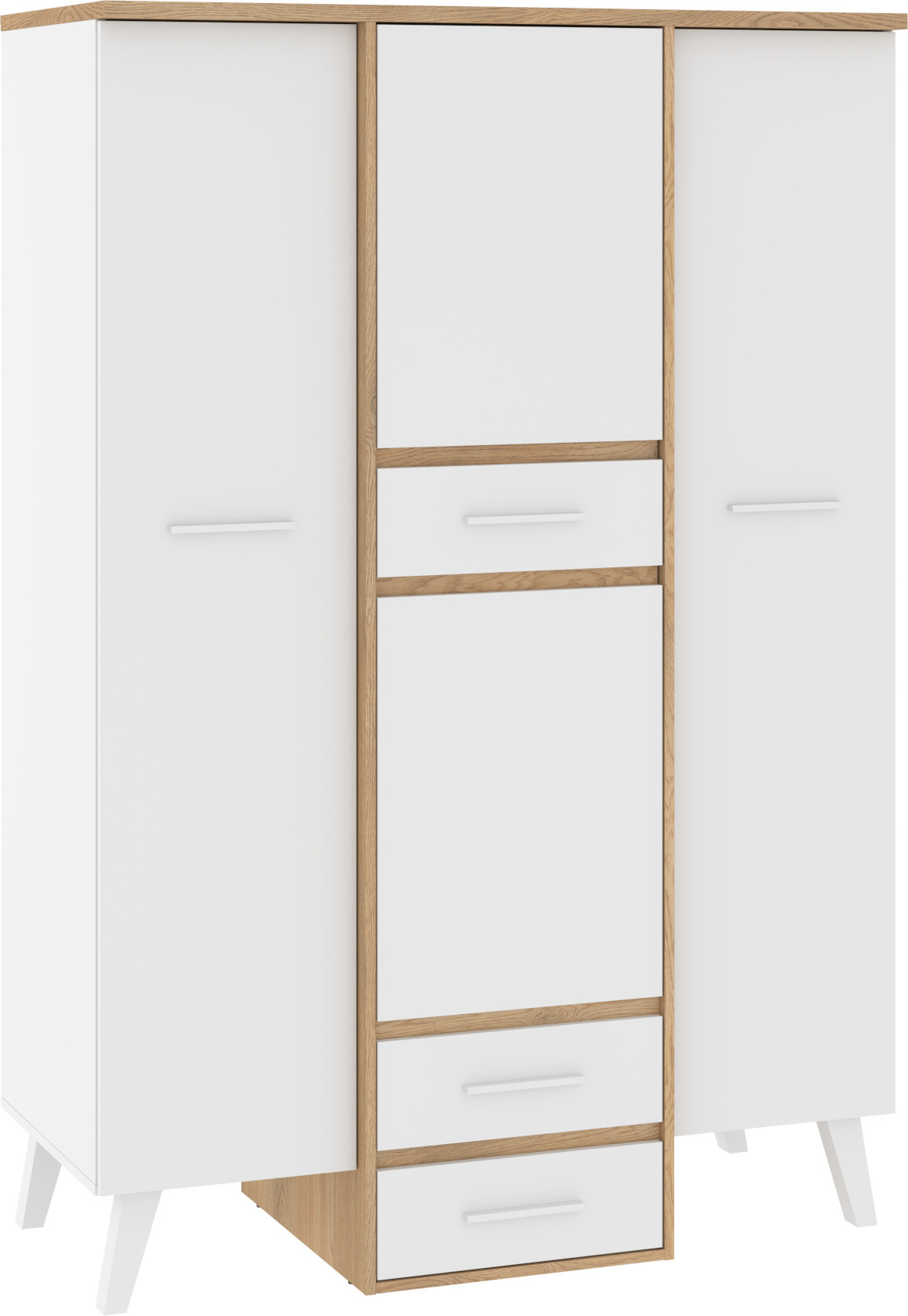 Skříň Nordis 16 stylově doplní vaši domácnost. Skříň je vybavená 2 zásuvkami, 4 policemi ve střední části a šatní tyčí s policí v částech krajních.