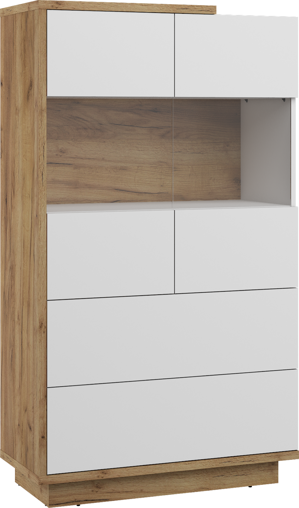 Systém Hybrid se vyrábí z kvalitních lamino desek o síle 16 mm a 25 mm. Desky mají ABS hranění, které zvyšuje odolnost proti odštípnutí hran. Minimalistický design podtrhuje nadčasová bílá ve vysokém lesku, která vkusně navazuje na přírodní dekory.