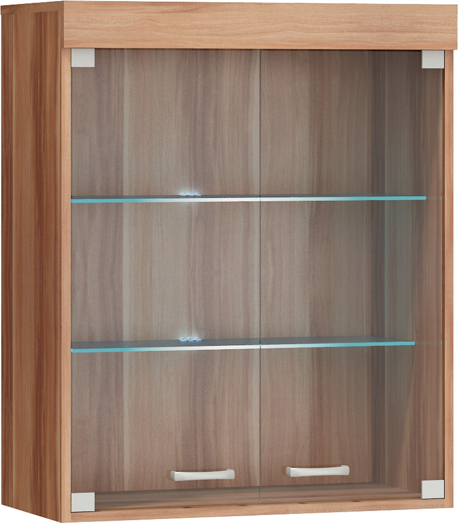 Součástí skříňky jsou 2 prosklená dvířka, za kterými jsou vloženy 2 skleněné police.