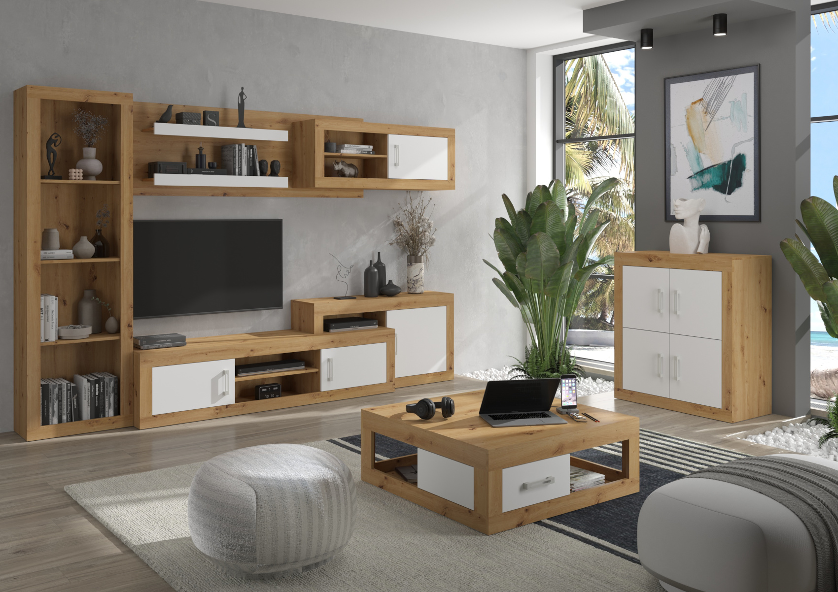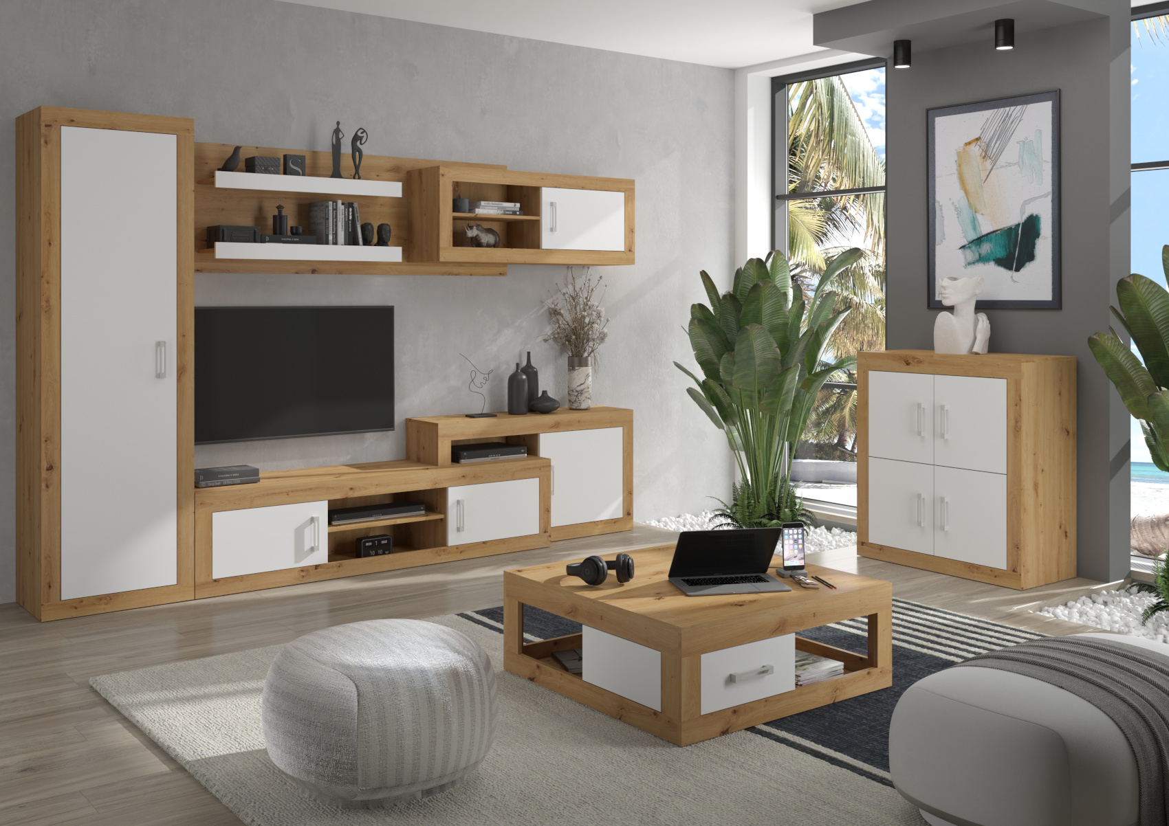 Závěsná skříňka Verin 07 se skvěle hodí do moderně zařízených interiérů. Zaujme vás svým neobvyklým avšak moderním designem a přírodním provedením. Je vyrobena z kvalitních lamino desek o síle 16 mm. Nabízíme vám několik barevných variant. Zajímavý design barev dodává skříňce ještě více na luxusu a nadčasovosti. Jednotlivé díly jsou variabilní, lze je navzájem kombinovat a vytvořit si tak obývací sestavu podle svých představ.