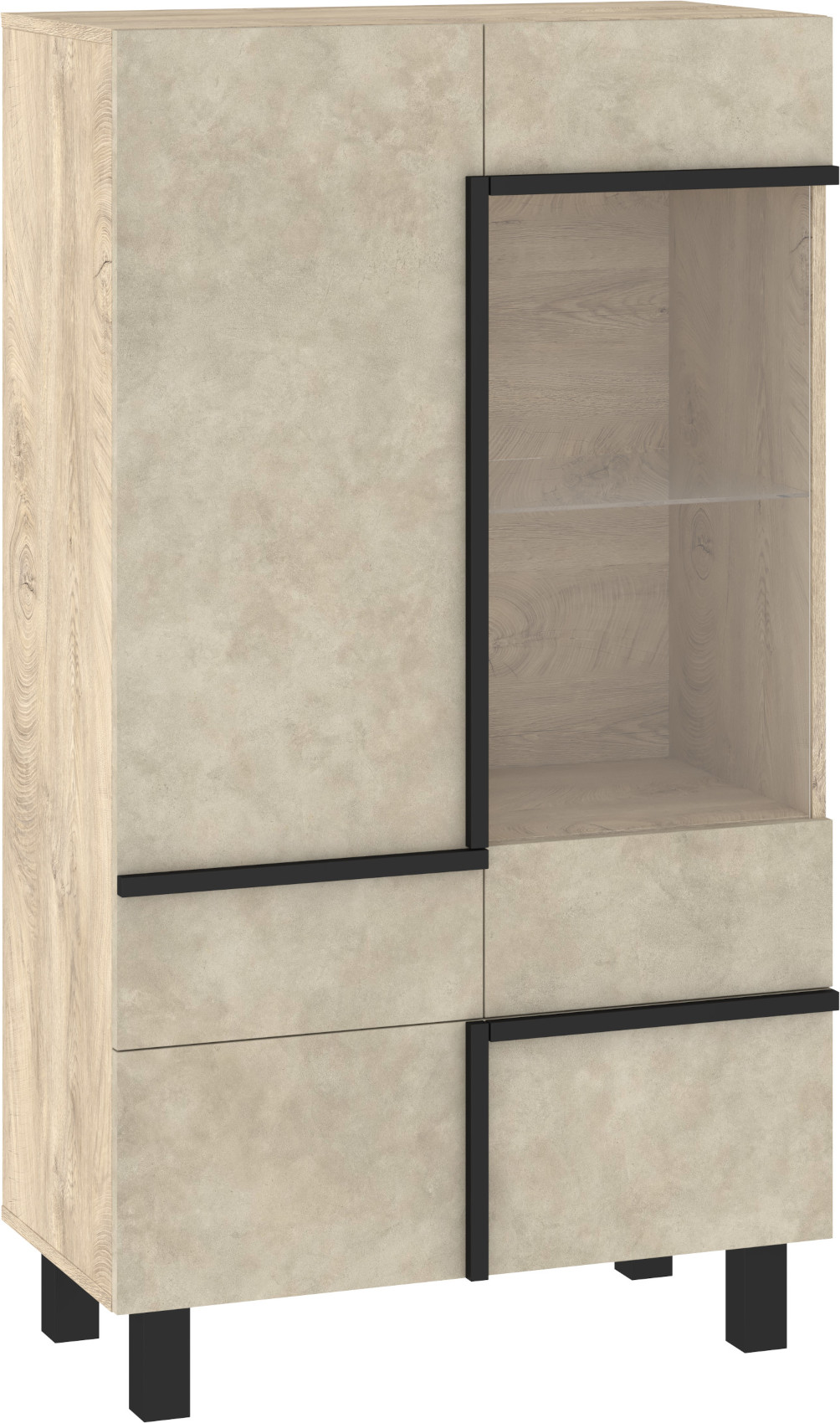 Vitrína Lars vyniká vkusným designem a propracovanými detaily. LTD materiál, o šířce 16 mm a 25 mm, ze kterého se nábytek skládá, zajišťuje vysokou a špičkovou kvalitu. Desky mají ABS hranění, které zvyšuje odolnost proti odštípnutí hran. Dvířka i zásuvky jsou vybaveny systémem tichého dovírání. Kolekci charakterizuje rafinované provedení úchytek a 12 cm dřevěné nožky. Nabízíme vám výběr z několika moderních dekorů.